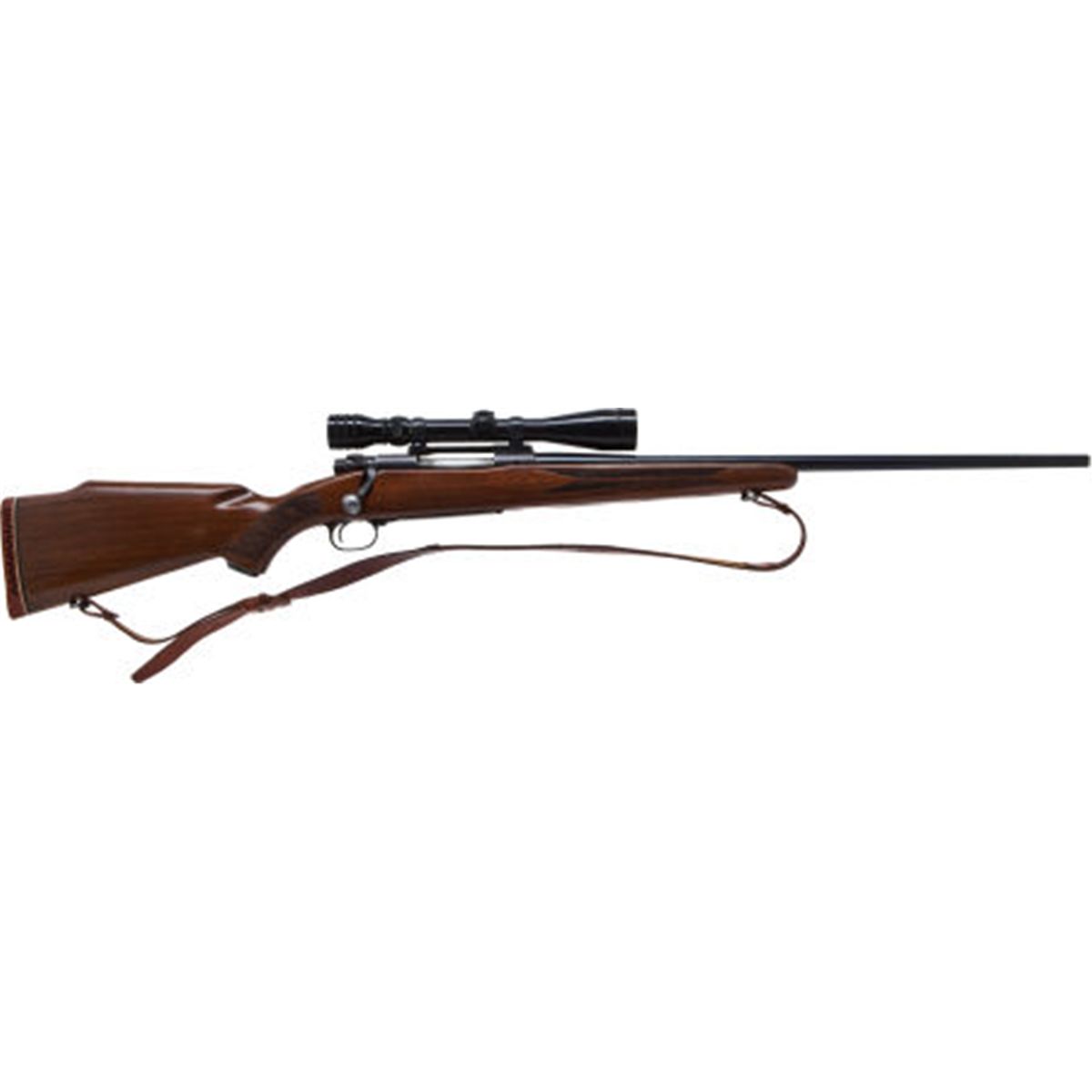 300 Win Mag Winchester Model 70 Bolt Action with Telescopic Sight. Serial no. 710801. 300 Winchester Magnum. 24-inch barrel with no sights. Blued action. Impressed checkered pistolgrip Monte Carlo stock of straight grain walnut. Maker's recoil pad. Sling. Redfield 3x9 telescopic sight. Standard crosshairs. One piece Redfield mount. Condition: Very Good. Metal shows 80-90% bluing. Bore shows some light corrosion. Wood shows nicks and scratches. Clear optics. NRA FIREARMS FOR FREEDOM PROGRAM