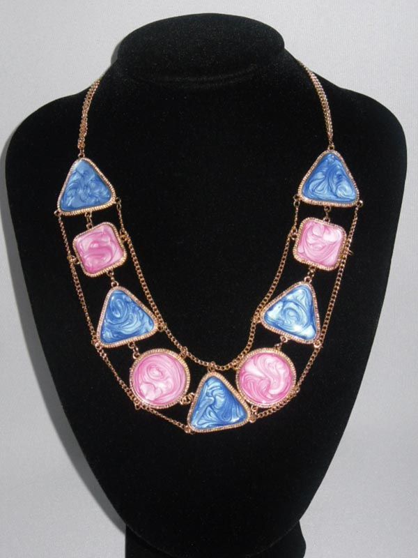 300CTW BLUE-PINK MULTI-SHAPED BRASS NECKLACE; **|**|** 300CTW BLUE-PINK MULTI-SHAPED BRASS NECKLACE; ; MSRP: $180