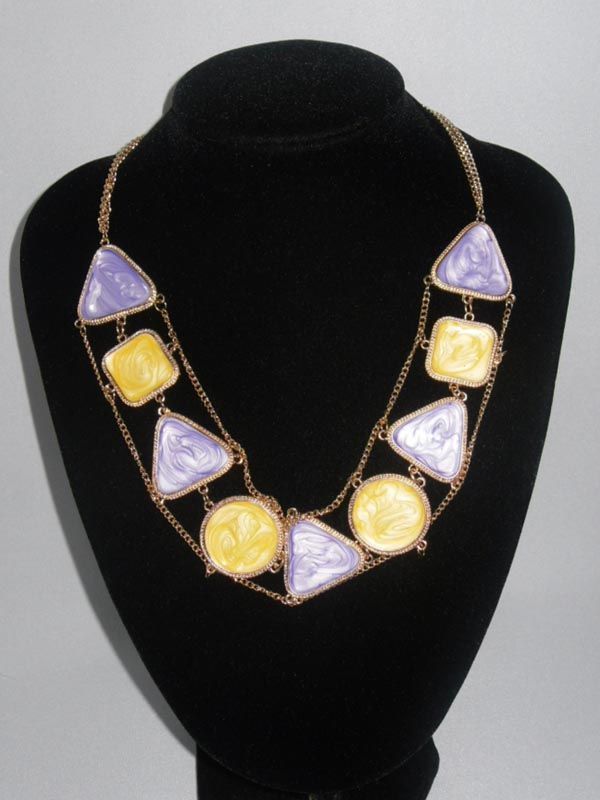 300CTW YELLOW PURPLE MULTI-SHAPED BRASS NECKLACE;18INCH **|**|** 300CTW YELLOW PURPLE MULTI-SHAPED BRASS NECKLACE;18INCH ; MSRP: $180