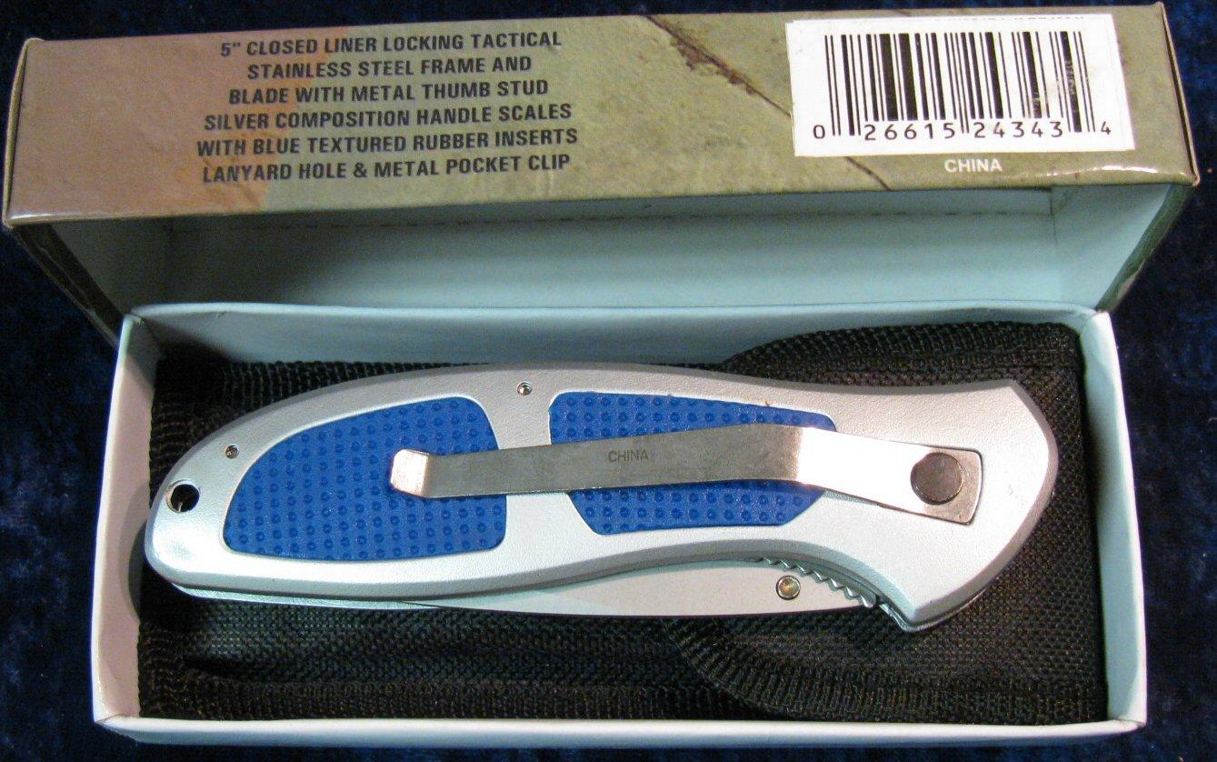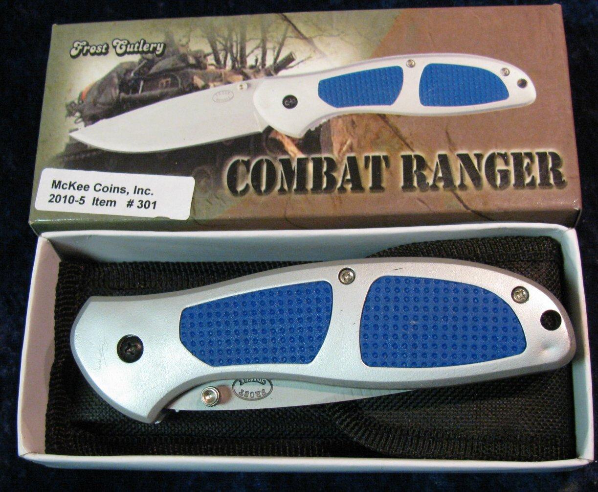 301. Frost Cutlery Combat Ranger Knife 5" Silver Composition Handle with Textured Rubber Inserts.