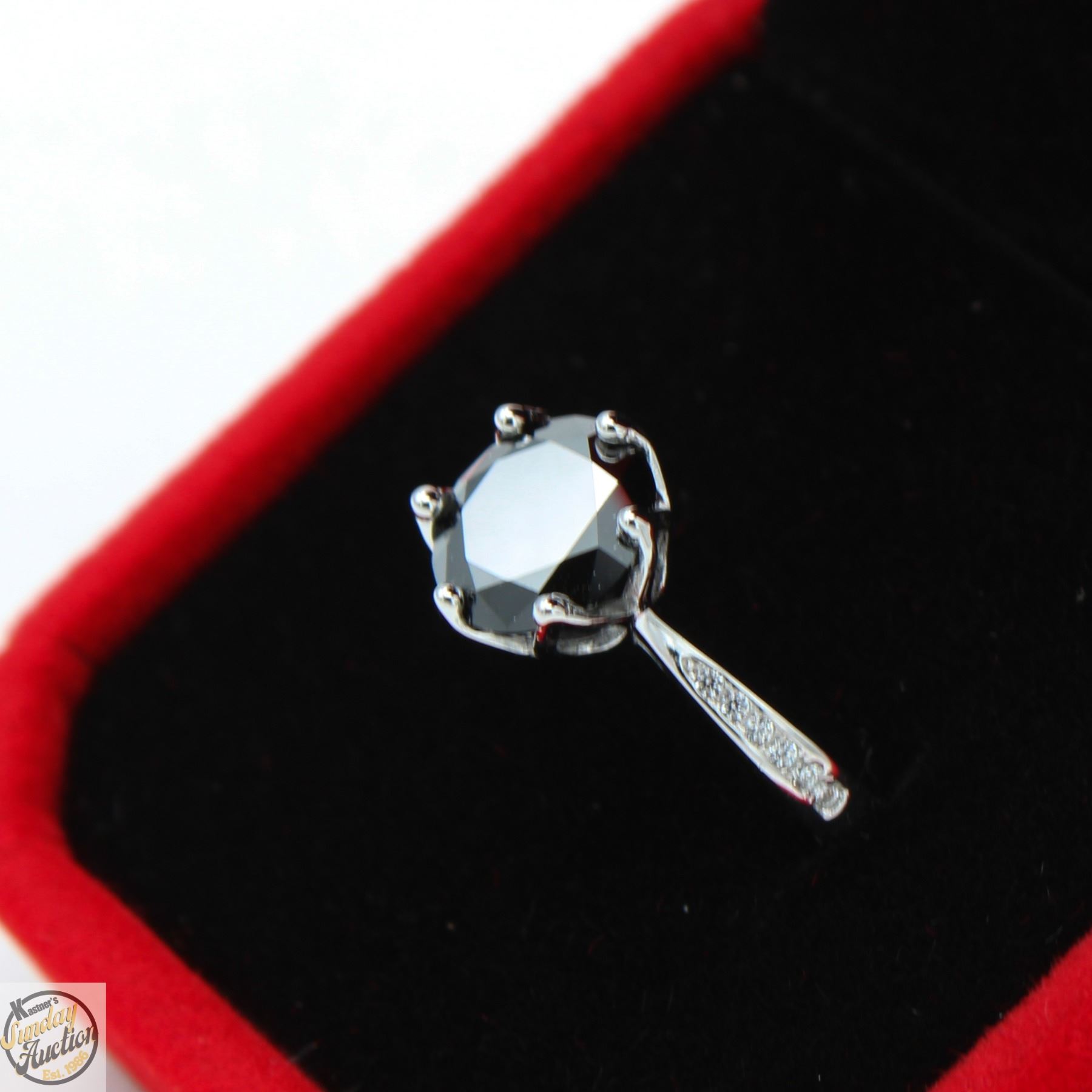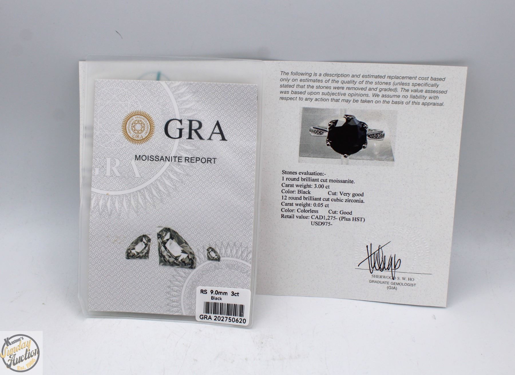 CUT MOISSANITE STONE VVS BLACK COLOR SET IN CENTER WITH 12 ROUND BRILLIANT CUT CUBIC ZIRCONIA SET IN TAPERED SHANKS AND SET IN 925 SILVER RING SIZE 7 RETAIL VALUE $1,275.00 **ALL ITEMS MUST BE REMOVED BY 5PM SATURDAY, AUGUST 16TH 2025. ALL REMAINING ITEMS WILL BE SUBJECT TO A $6.00 PER DAY STORAGE CHARGE. ANY ITEMS REMAINING AFTER MONDAY, SEPTEMBER 1ST 2025 WILL BE CONSIDERED FORFEITED. NO REFUNDS WILL BE ISSUED FOR FORFEITED ITEMS. TO SCHEDULE A PICK UP APPOINTMENT CLICK HERE