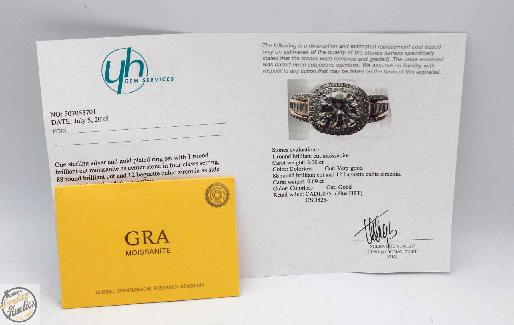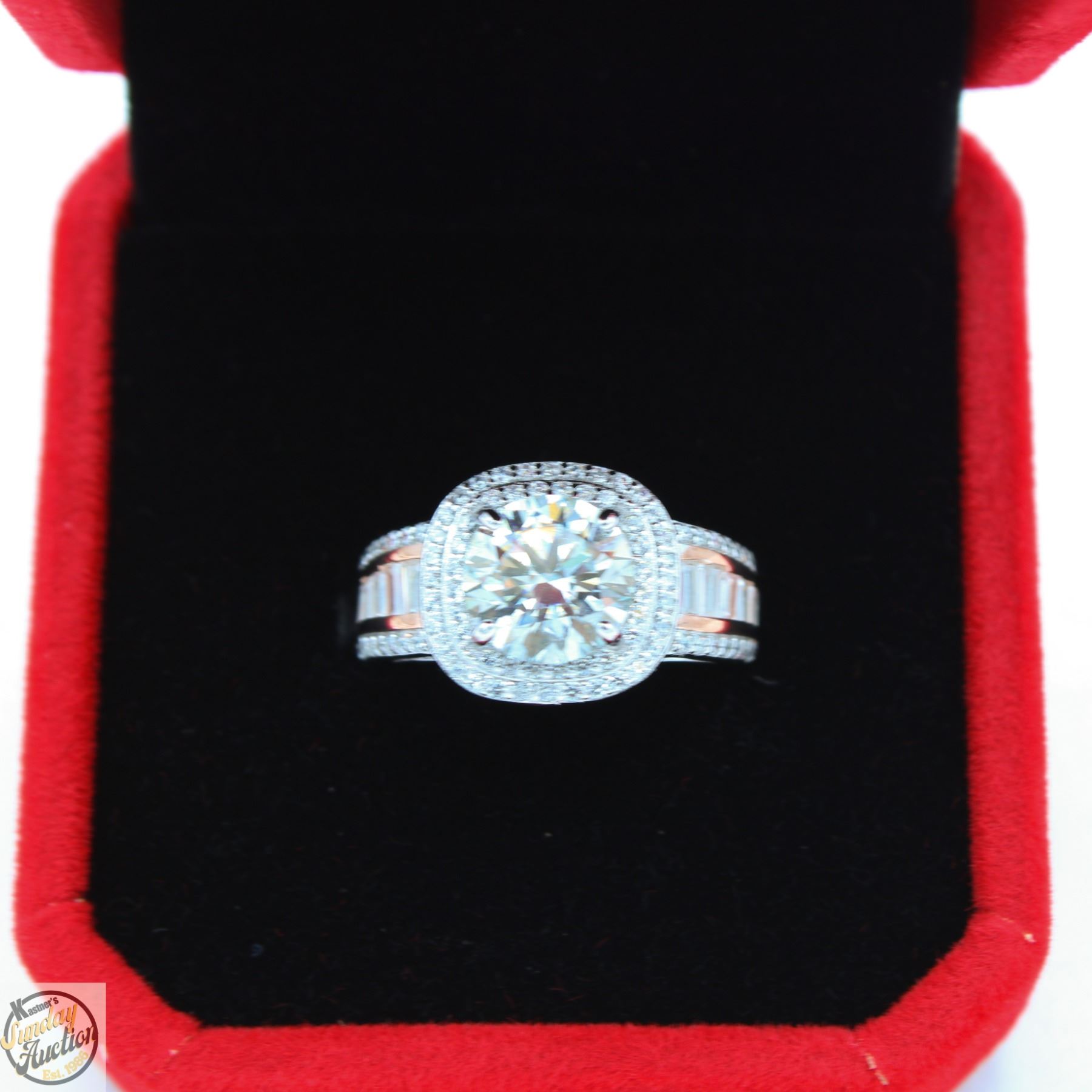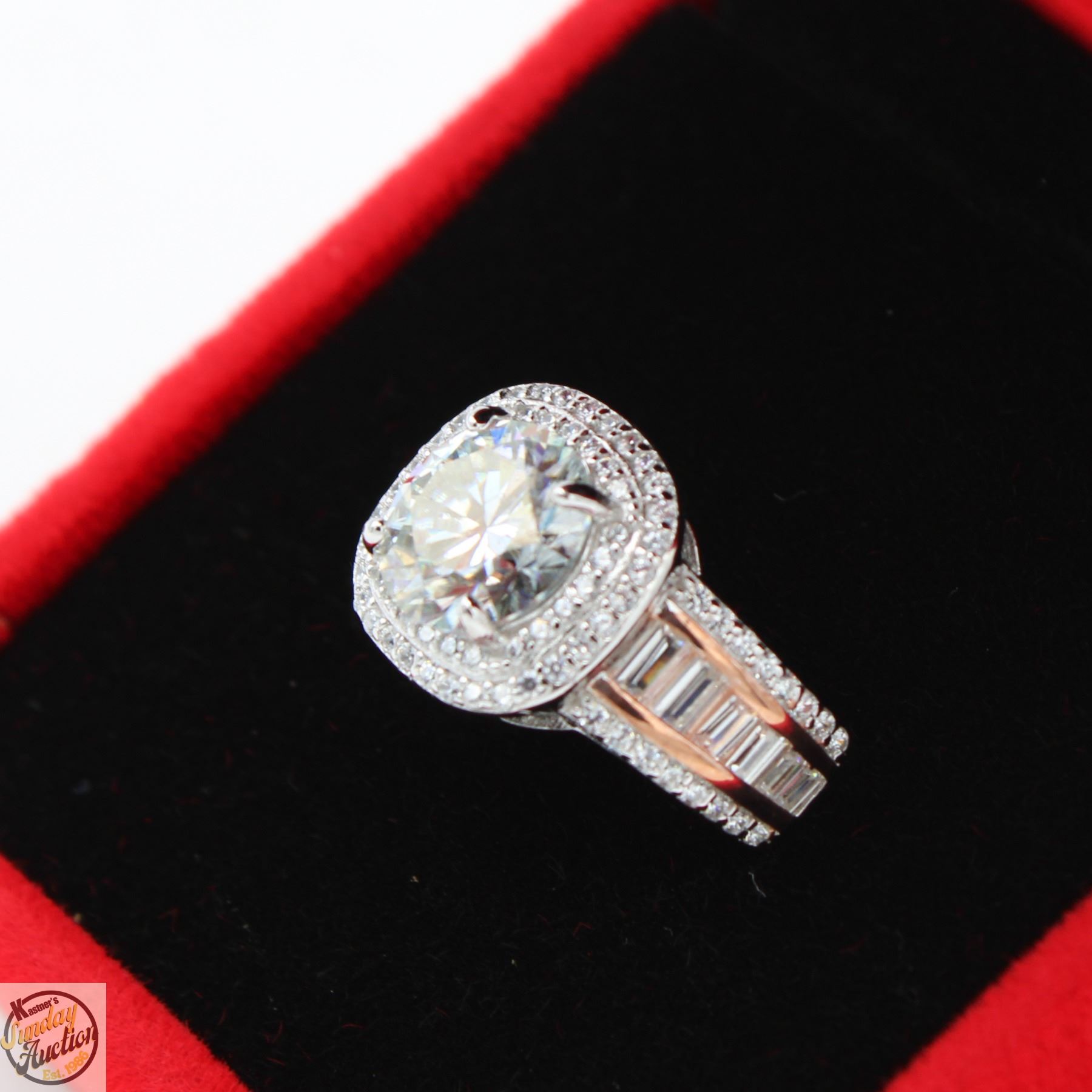 CUT MOISSANITE STONE VVS D COLOR WITH 88 ROUND BRILLIANT CUT CUBIC ZIRCONIA AND 12 BAGUETTE SHAPED CUBIC ZIRCONIA SET IN SHANKS SET IN 925 SILVER RING SIZE 6 RETAIL VALUE $1,075.00 **ALL ITEMS MUST BE REMOVED BY 5PM SATURDAY, AUGUST 23RD 2025. ALL REMAINING ITEMS WILL BE SUBJECT TO A $6.00 PER DAY STORAGE CHARGE. ANY ITEMS REMAINING AFTER MONDAY, SEPTEMBER 8TH 2025 WILL BE CONSIDERED FORFEITED. NO REFUNDS WILL BE ISSUED FOR FORFEITED ITEMS. TO SCHEDULE A PICK UP APPOINTMENT CLICK HERE
