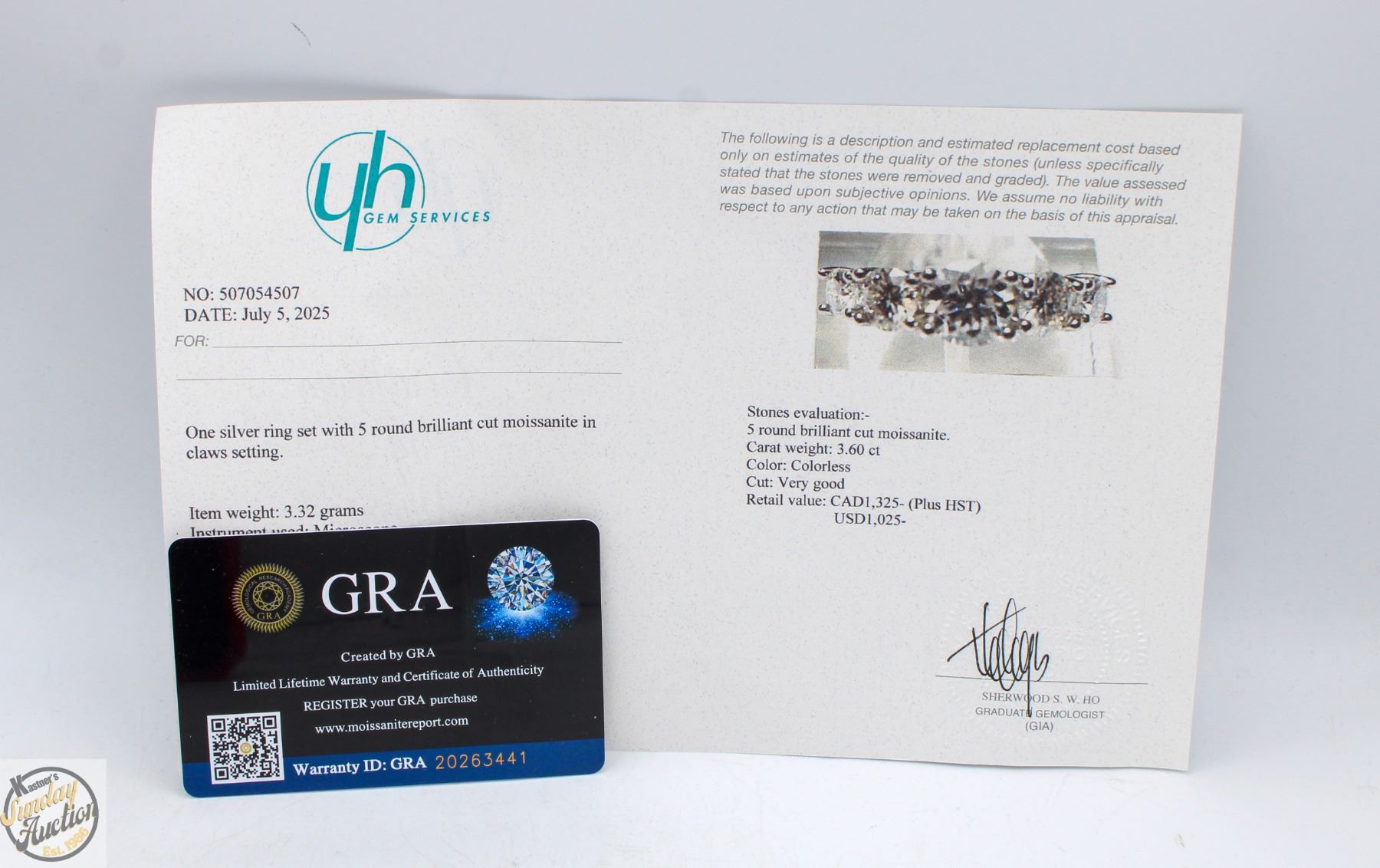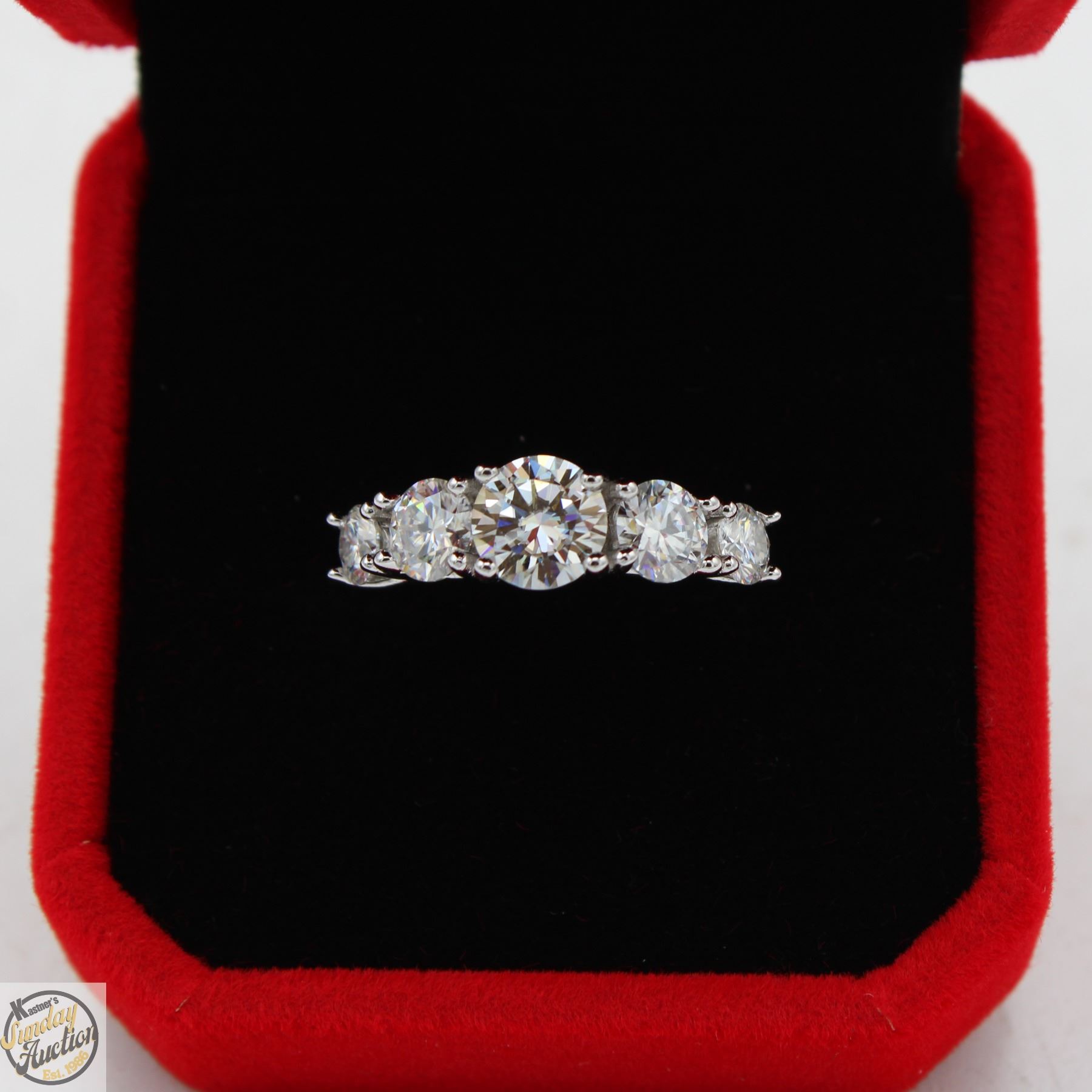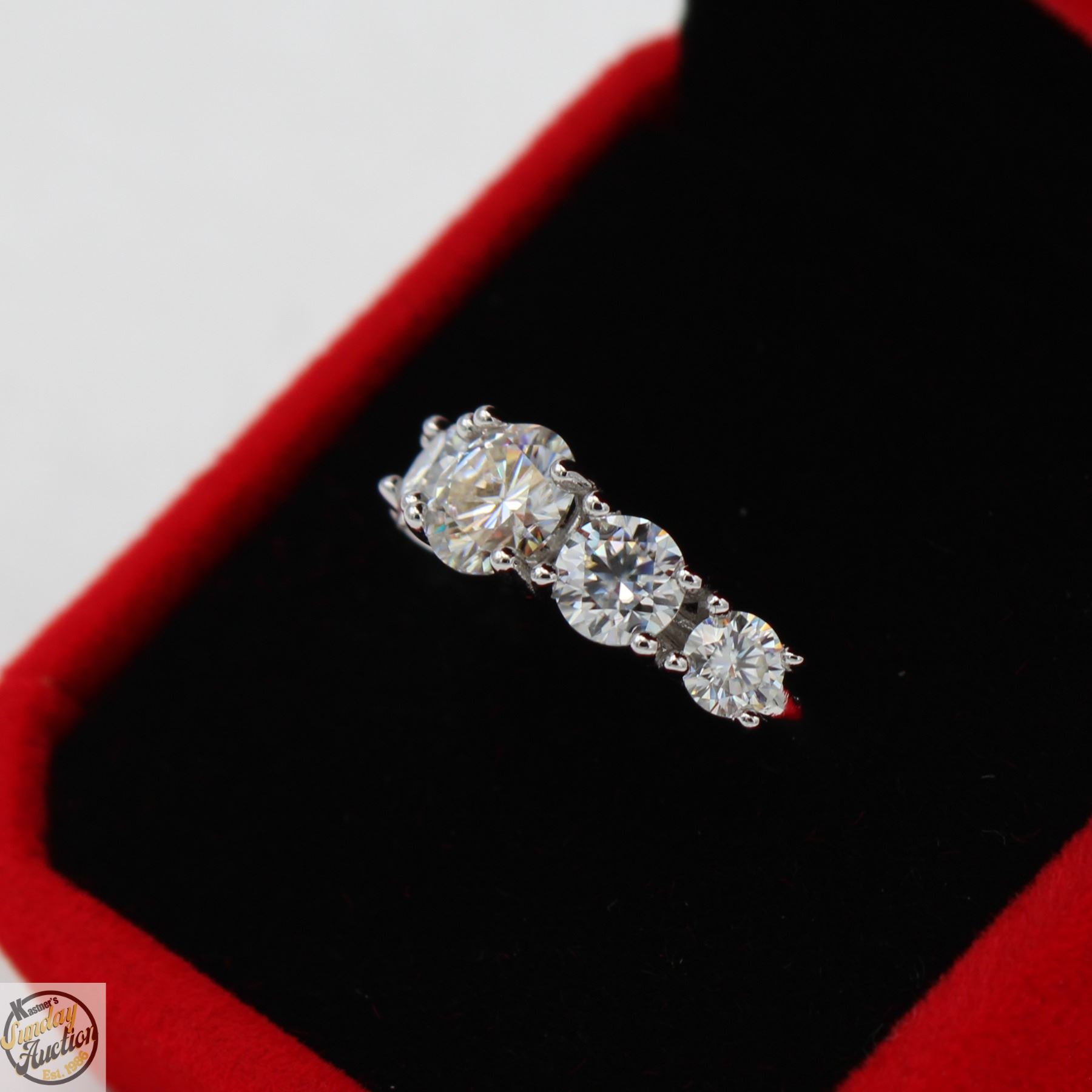 BRILLIANT CUT MOISSANITE STONES VVS D COLOR SET WITH LARGER MOISSANITE SET IN CENTER WITH GRADUATING DOWN IN SIZE ON EITHER SIDE SET IN 925 SILVER RING SIZE 6.5 RETAIL VALUE $1,325.00 **ALL ITEMS MUST BE REMOVED BY 5PM SATURDAY, AUGUST 23RD 2025. ALL REMAINING ITEMS WILL BE SUBJECT TO A $6.00 PER DAY STORAGE CHARGE. ANY ITEMS REMAINING AFTER MONDAY, SEPTEMBER 8TH 2025 WILL BE CONSIDERED FORFEITED. NO REFUNDS WILL BE ISSUED FOR FORFEITED ITEMS. TO SCHEDULE A PICK UP APPOINTMENT CLICK HERE