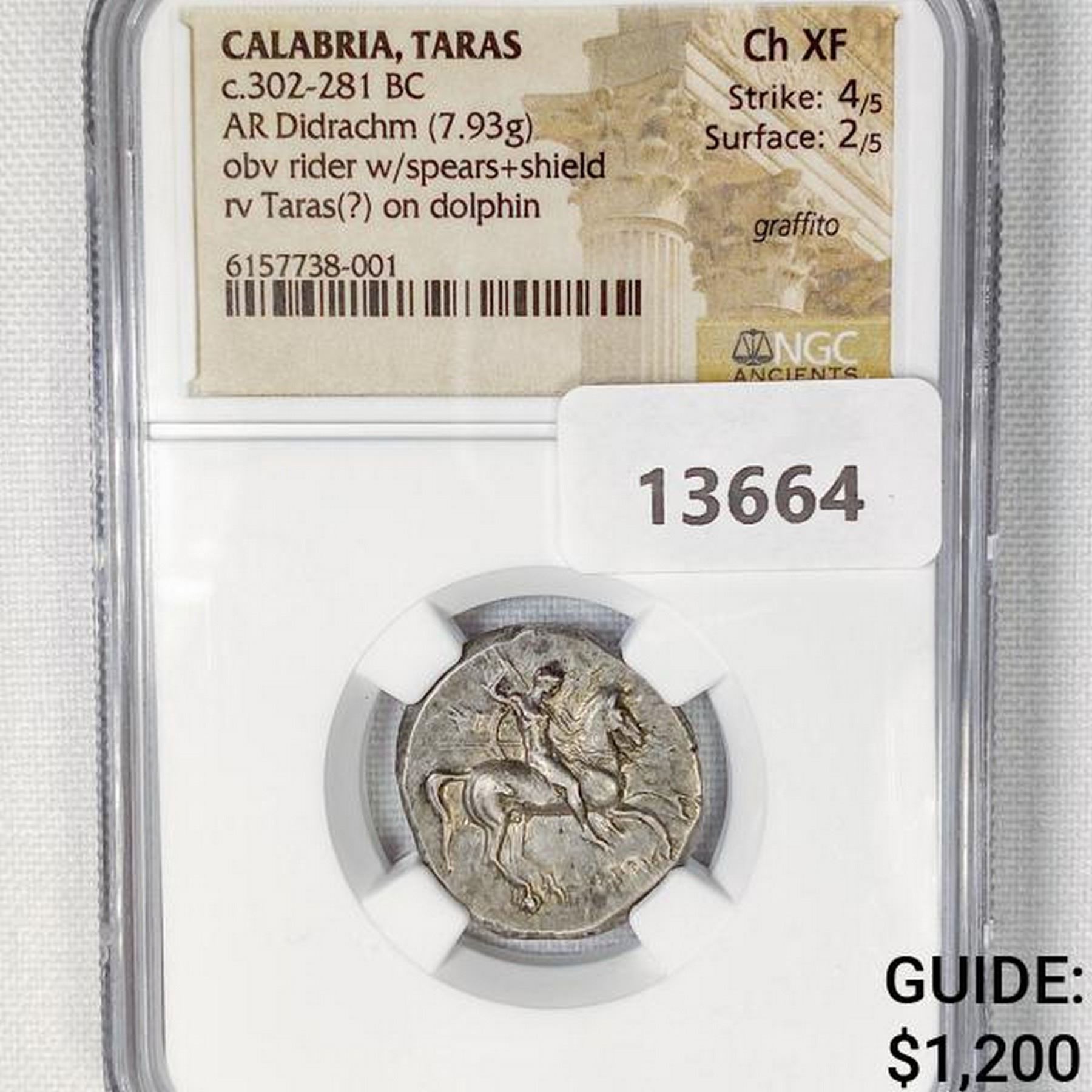 302-281 BC Calabria AR Didrachm (7.93g) NGC-Ch XF