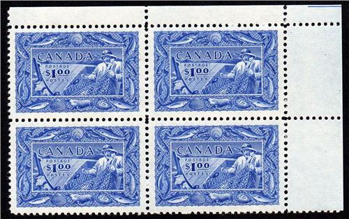 #302 XF-NH UPPER RIGHT PLATE BLOCK 4 CAT$300.00 FISHING
