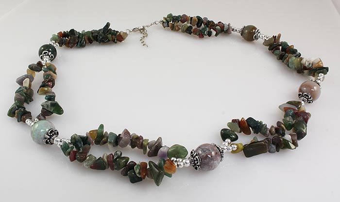 303.64CTW EARTHY AGATE CHIPS NECKLACE W/ METAL LOCK **|**|** 19 INCHES LONG FREEFORM CHIP BEAD NECKLACE HANDMADE WITH EARTHY GREEN AGATE GEMSTONE ; MSRP: $100