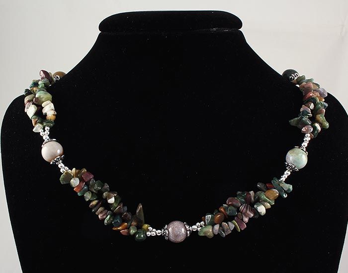 303.64CTW EARTHY AGATE CHIPS NECKLACE W/ METAL LOCK **|**|** 19 INCHES LONG FREEFORM CHIP BEAD NECKLACE HANDMADE WITH EARTHY GREEN AGATE GEMSTONE ; MSRP: $100