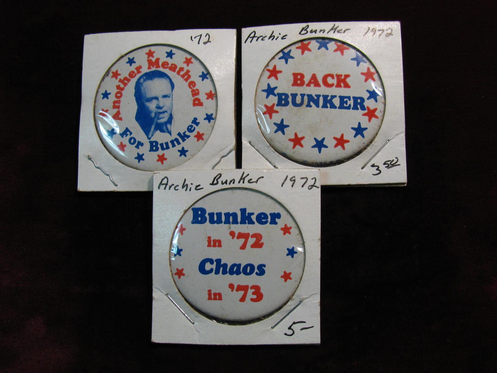 3030. (3) Different “Bunker” 1972 Anti-campaign Pin-backs.