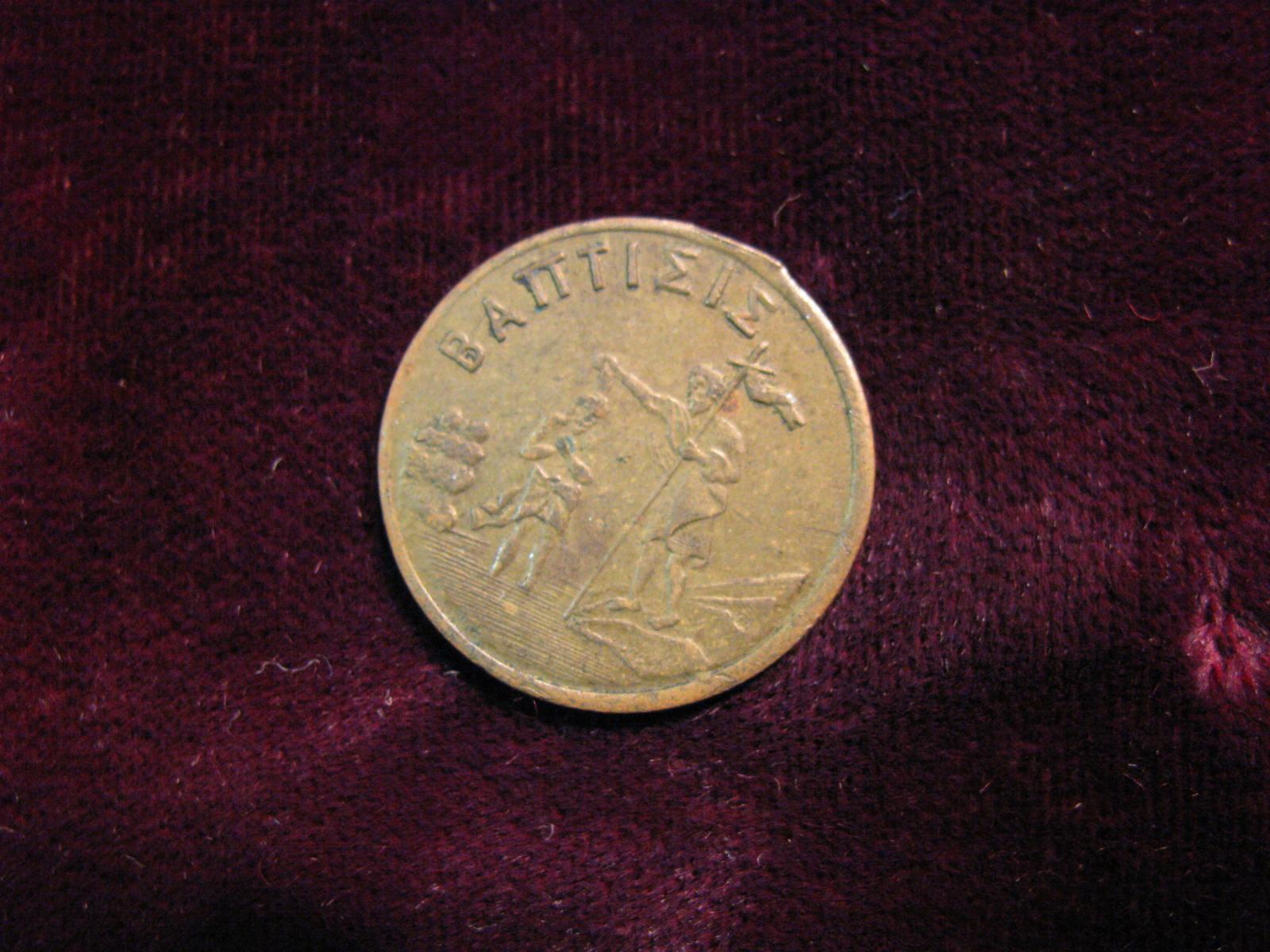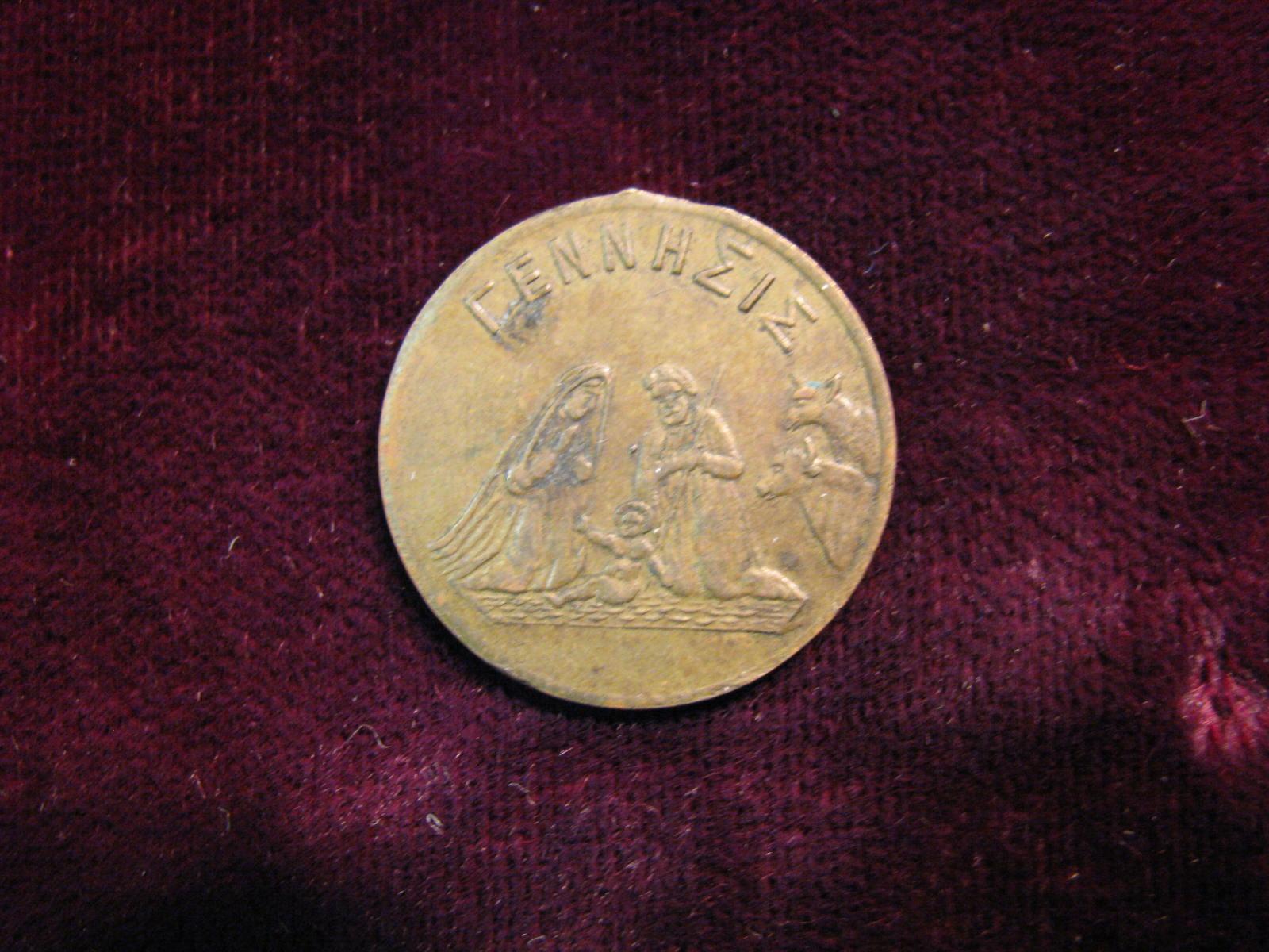 3032. Christian Token. Christ Baptized & Manger scene. Greek Bronze.