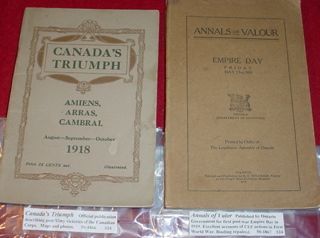 3042 - Two 1918-19 booklets celebrating Canadian victories in WW1. Minor repair to binding of Ontario publication.victories in WW1. Minor repair to binding of Ontario publication.