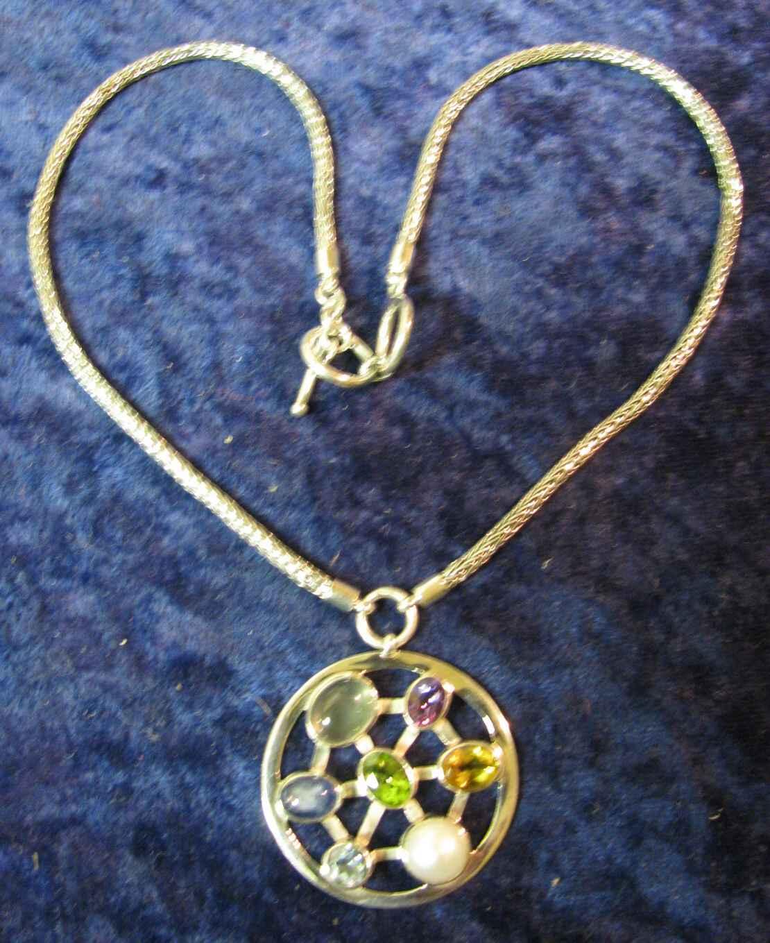 305. .925 fine Pendant and Necklace with multiple colored Stones.