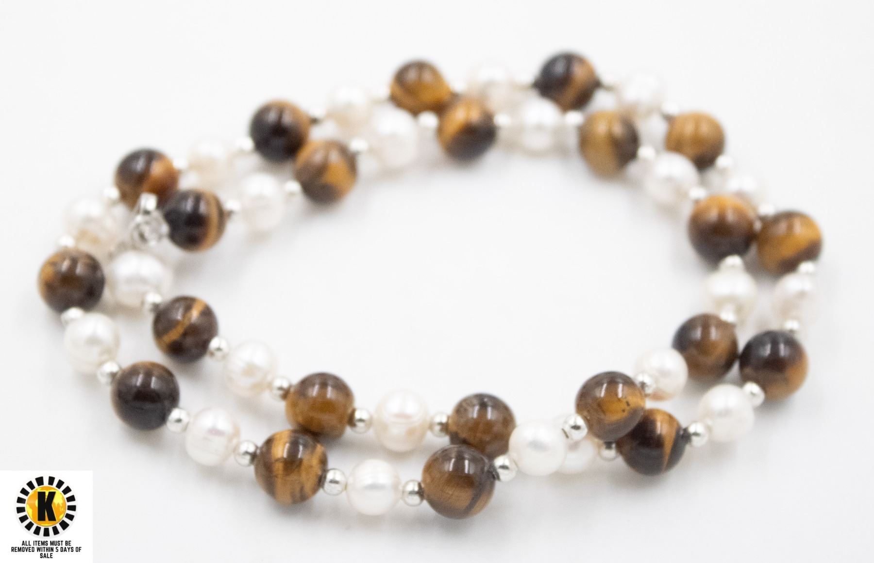 #305- FRESH WATER PEARL ,TIGER EYE NECKLACE