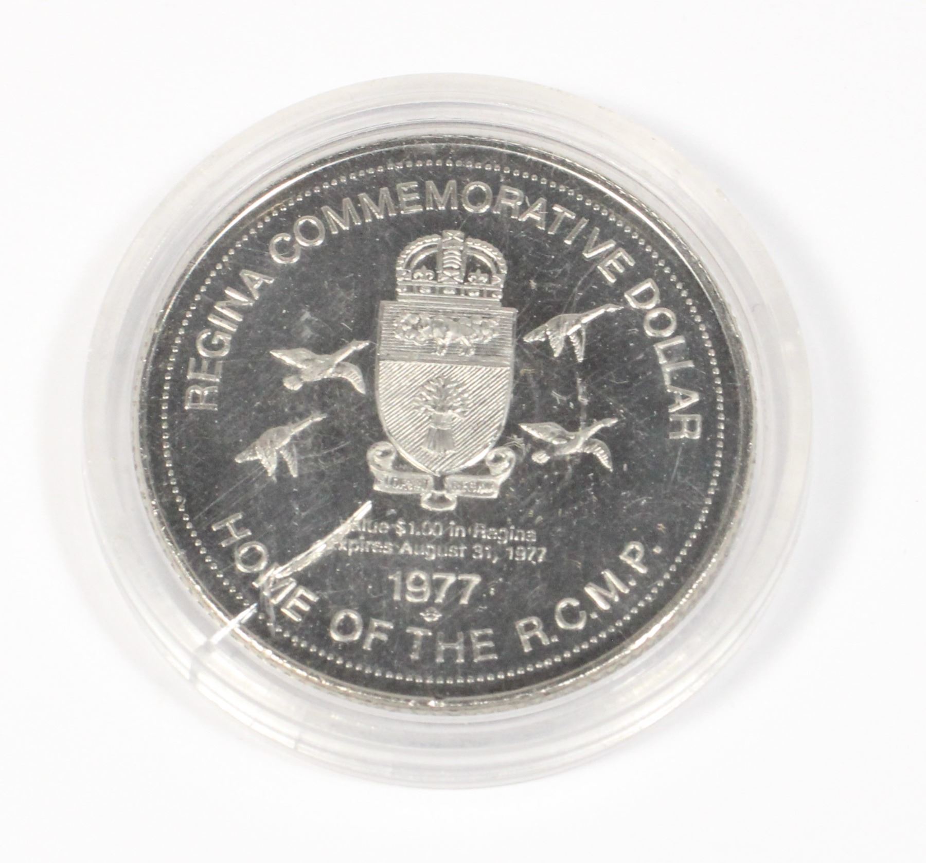 REGINA COMMEMORATIVE DOLLAR 1977 HOME OF THE R.C.M.P., IN COIN CASE