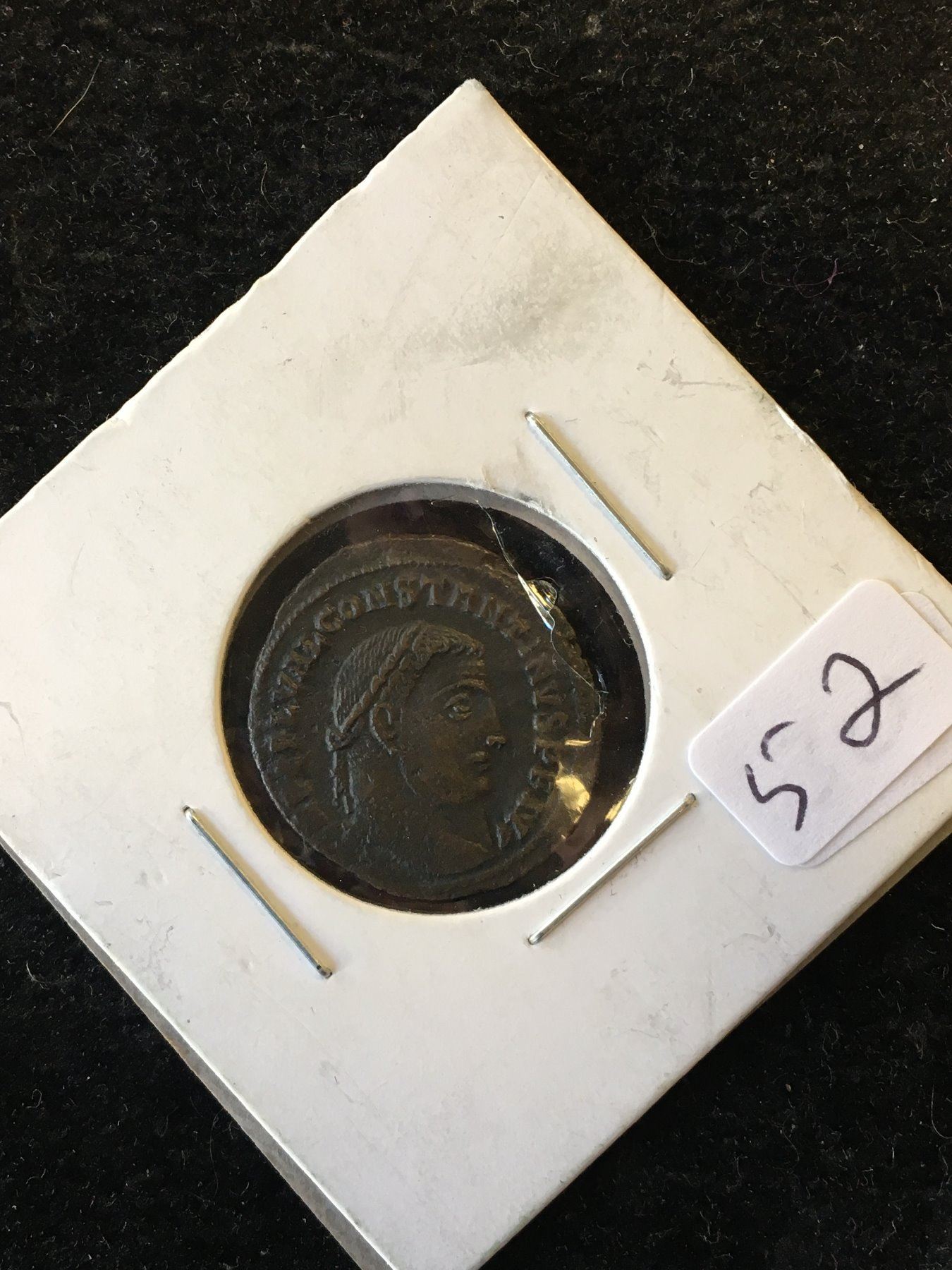 NICE GRADE ANCIENT BRONZE COIN WITH THE EMPEROR FACING RIGHT FULL INSCRIPTION IN EXERGUE.REV: JUPITER HOLDING NIKE WITH EAGLE BELOW.IOVI CONSERVATORI AROUND