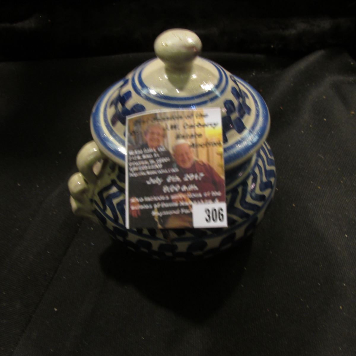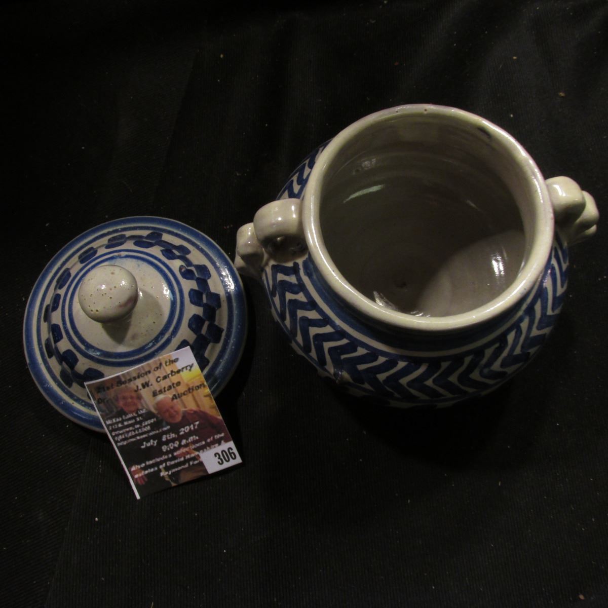 306.Hand Thrown Pottery Glazed lidded Vase similar to Blue Delft.