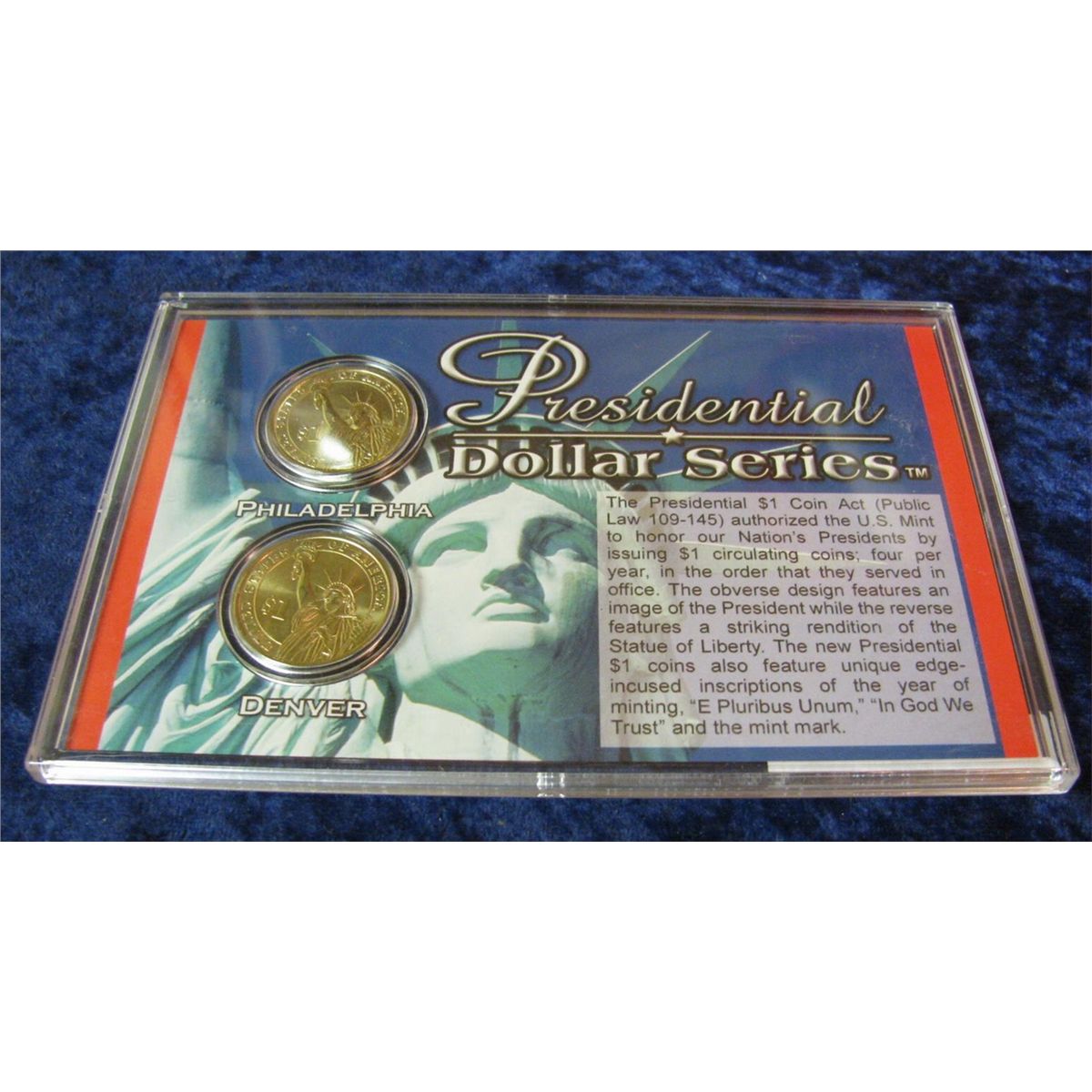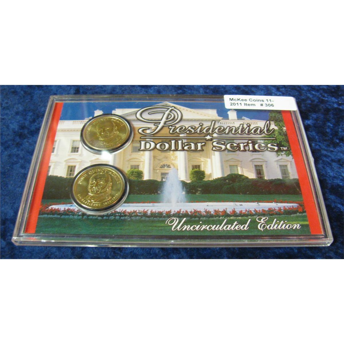 306. John Quincy Adams Two-piece Presidential Dollar Set in a hard plastic case.