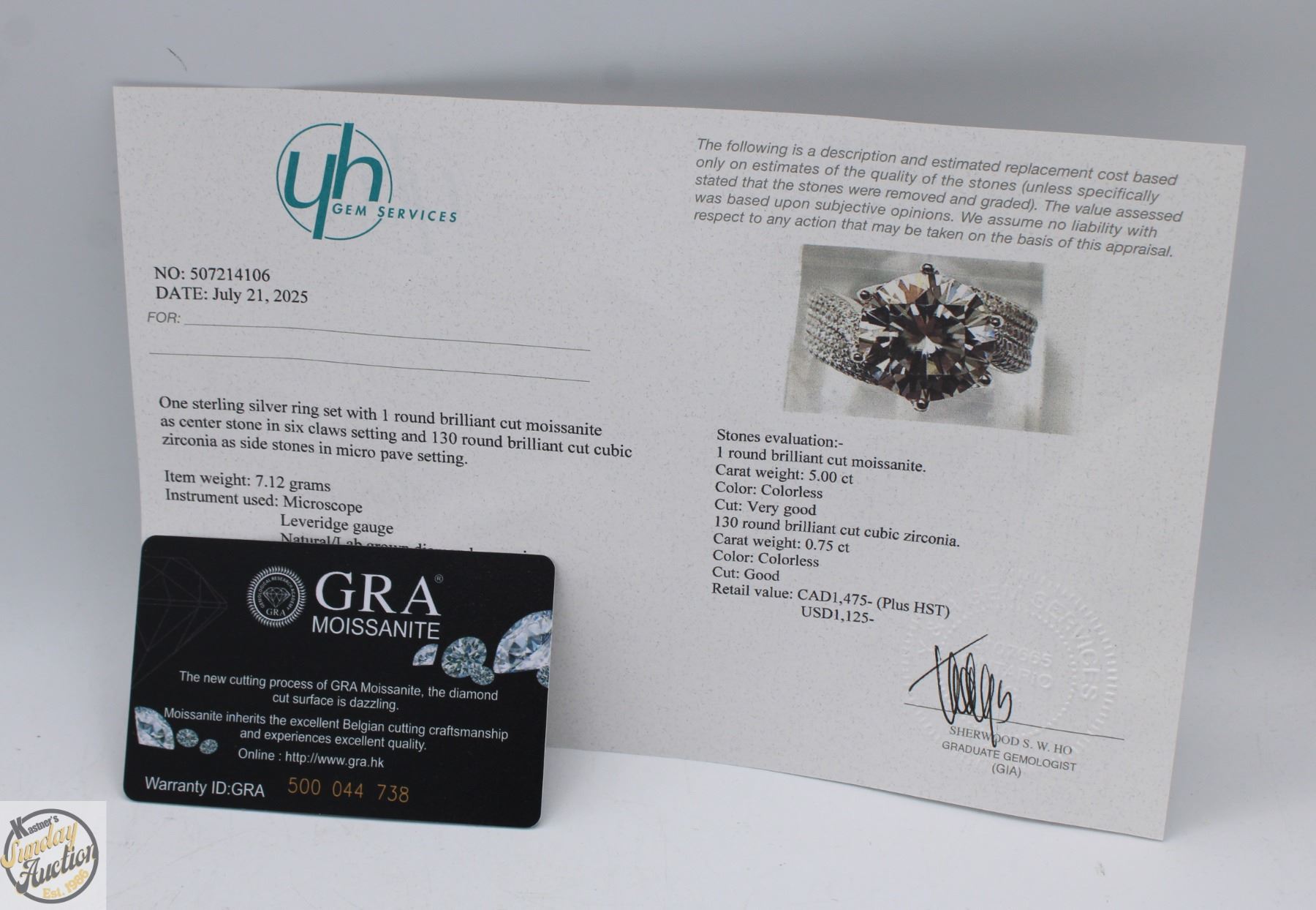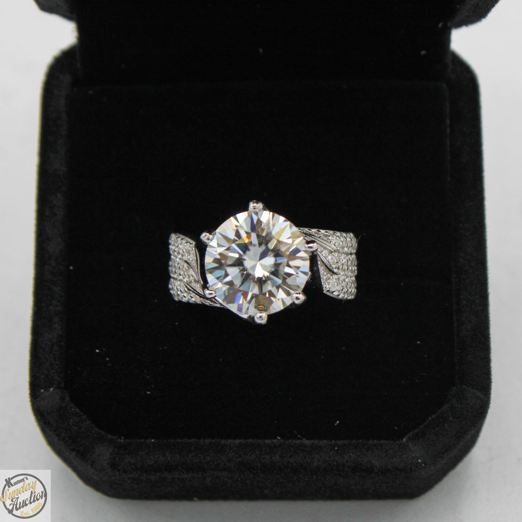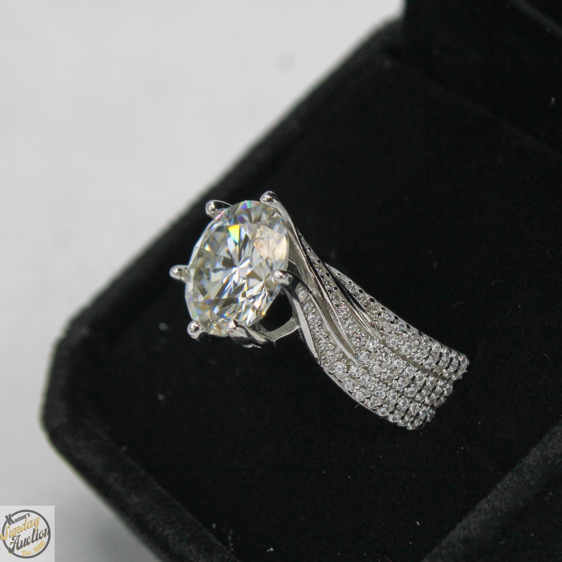 MOISSANITE STONE VVS D COLOR SET WITH 130 ROUND BRILLIANT CUT CZ’S SET IN 925 SILVER RING SIZE 6.25 RETAIL VALUE $1,475.00