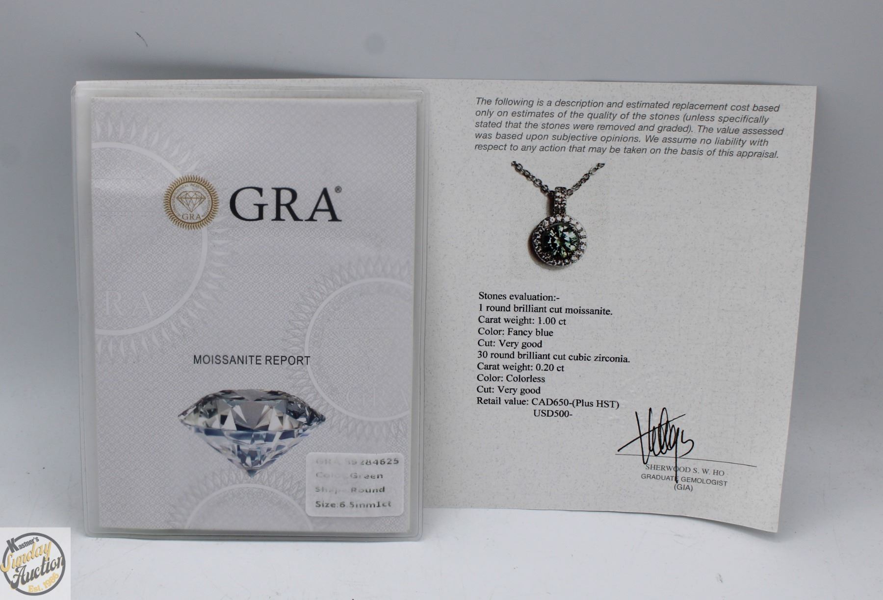 MOISSANITE STONE VVS BLUE COLOR WITH 30 ROUND BRILLIANT CUT CUBIC ZIRCONIA SET IN ROUND HALO AND IN BALE SET IN 925 SILVER PENDANT RETAIL VALUE $650.00 **ALL ITEMS MUST BE REMOVED BY 5PM SATURDAY, SEPTEMBER 6TH 2025. ALL REMAINING ITEMS WILL BE SUBJECT TO A $6.00 PER DAY STORAGE CHARGE. ANY ITEMS REMAINING AFTER MONDAY, SEPTEMBER 22ND 2025 WILL BE CONSIDERED FORFEITED. NO REFUNDS WILL BE ISSUED FOR FORFEITED ITEMS. TO SCHEDULE A PICK UP APPOINTMENT CLICK HERE
