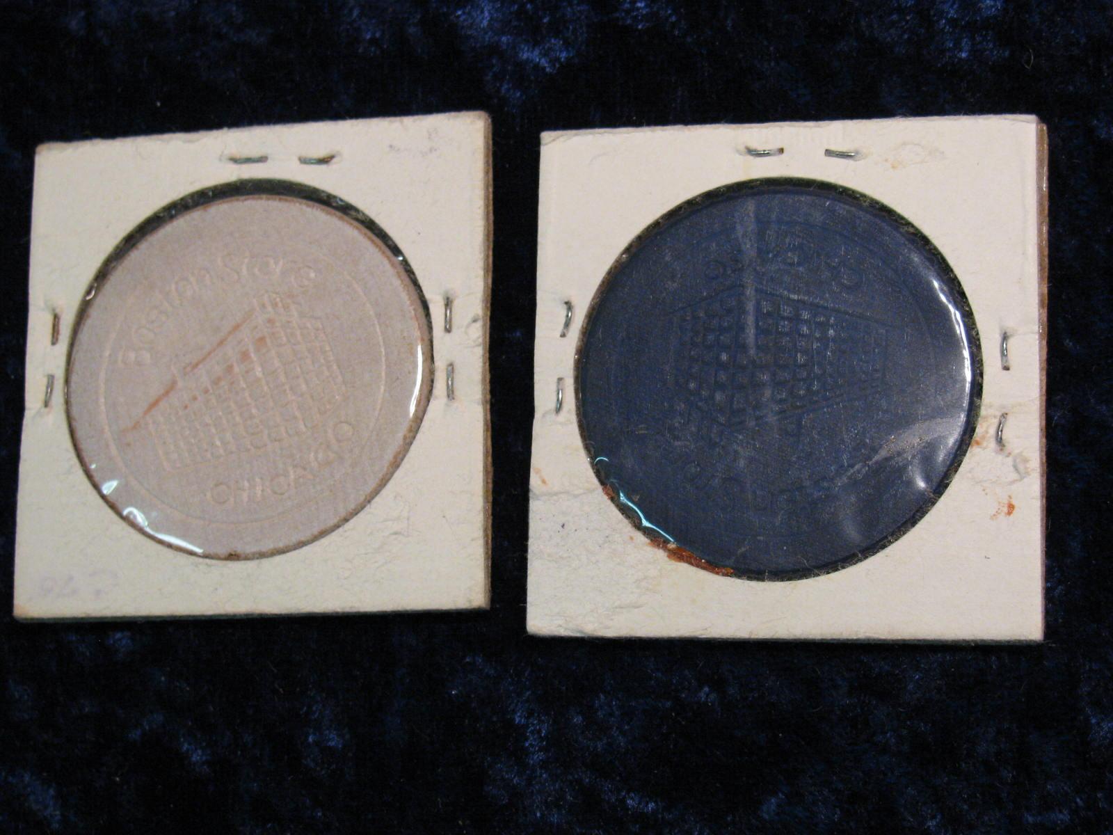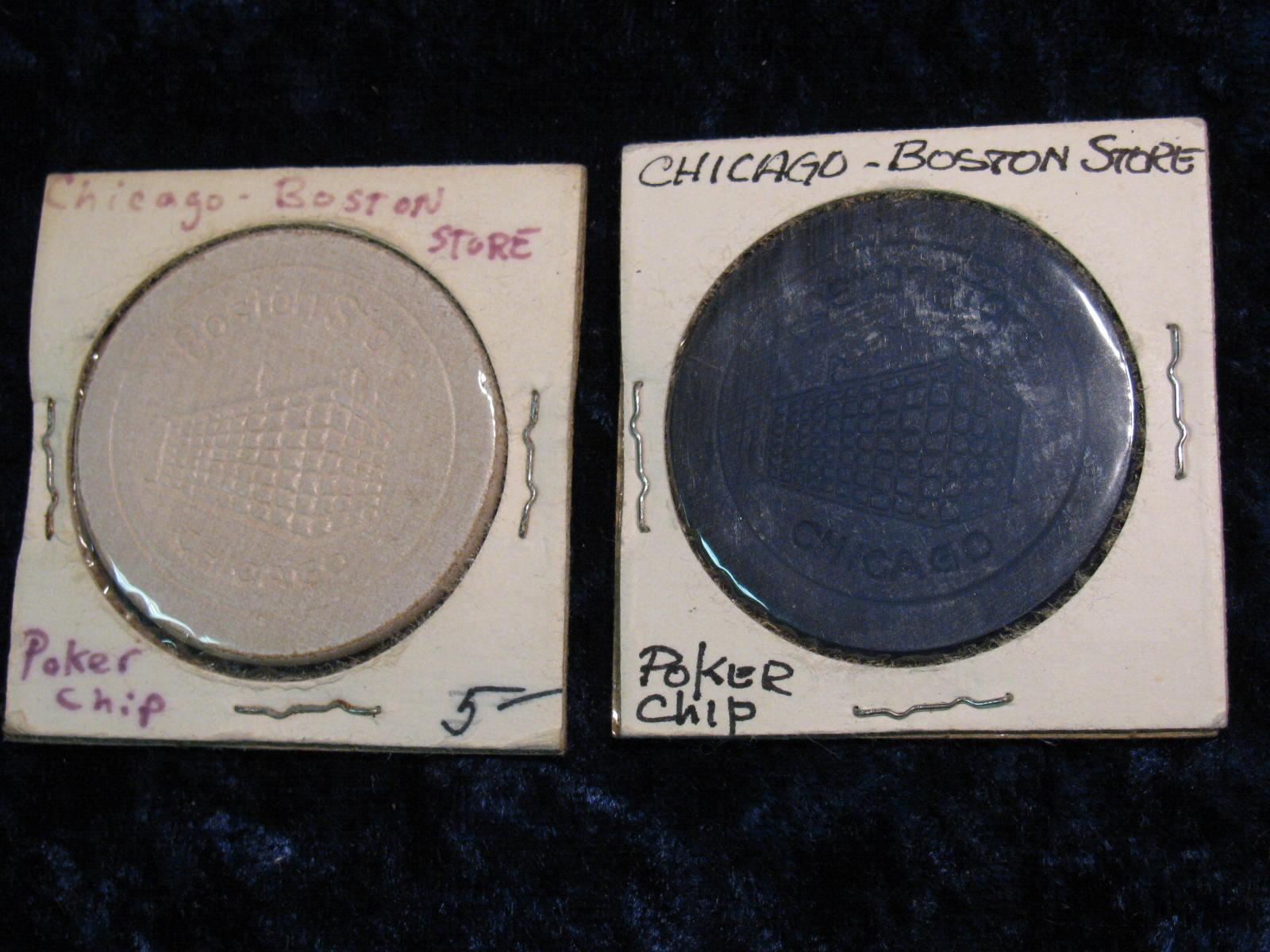 3069. (2) Chicago-Boston Store White & Blue Poker Chips.