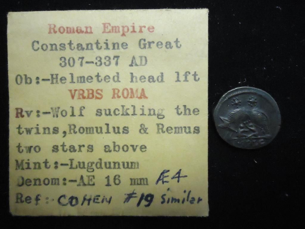 OBV. HELEMTED HEAD LEFT REV. WOLF SUCKLING THE TWINS AU