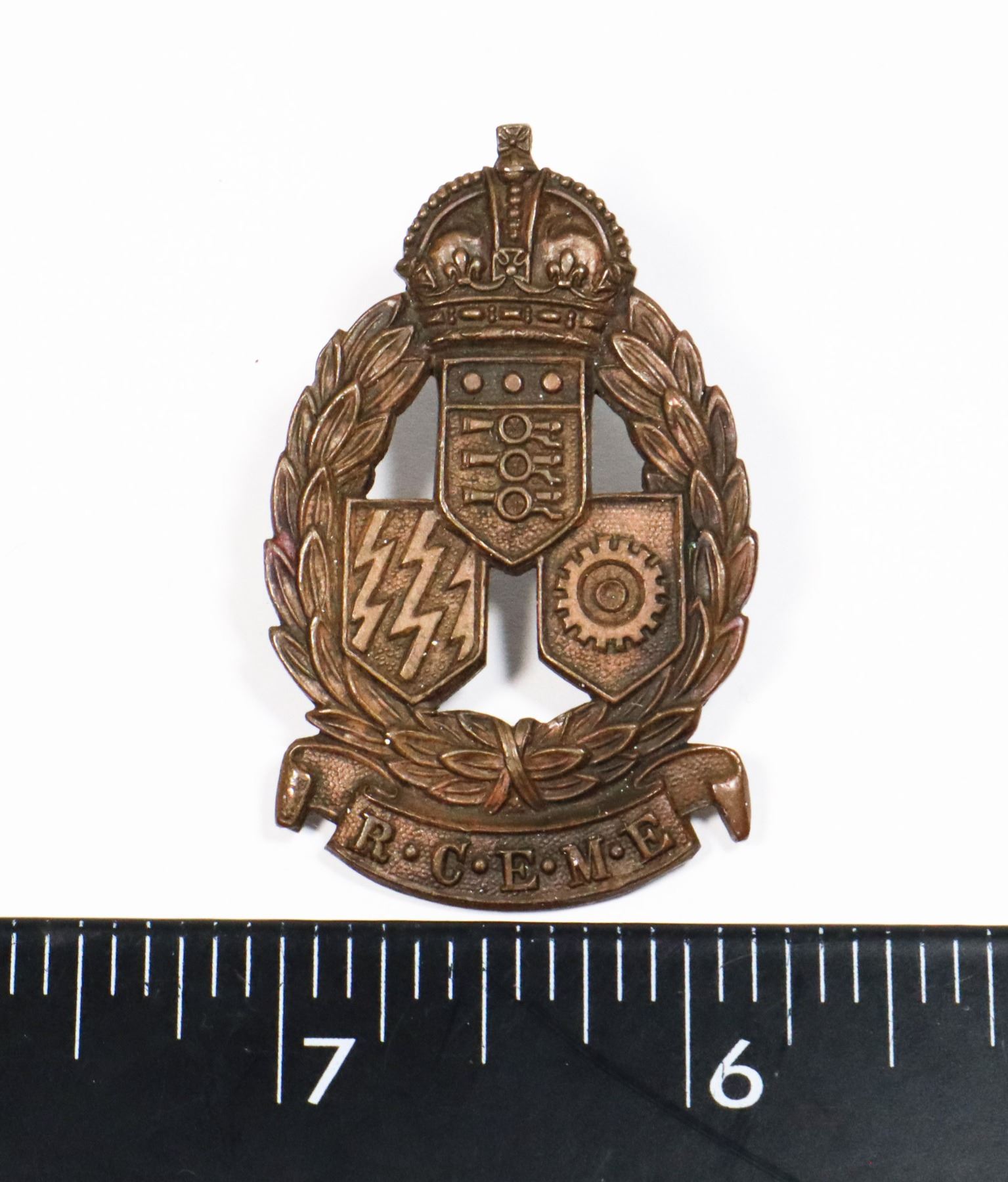 ELECTRICAL MECHANICAL ENGINEERS WORLD WAR TWO INSIGNIA SOLID BACK