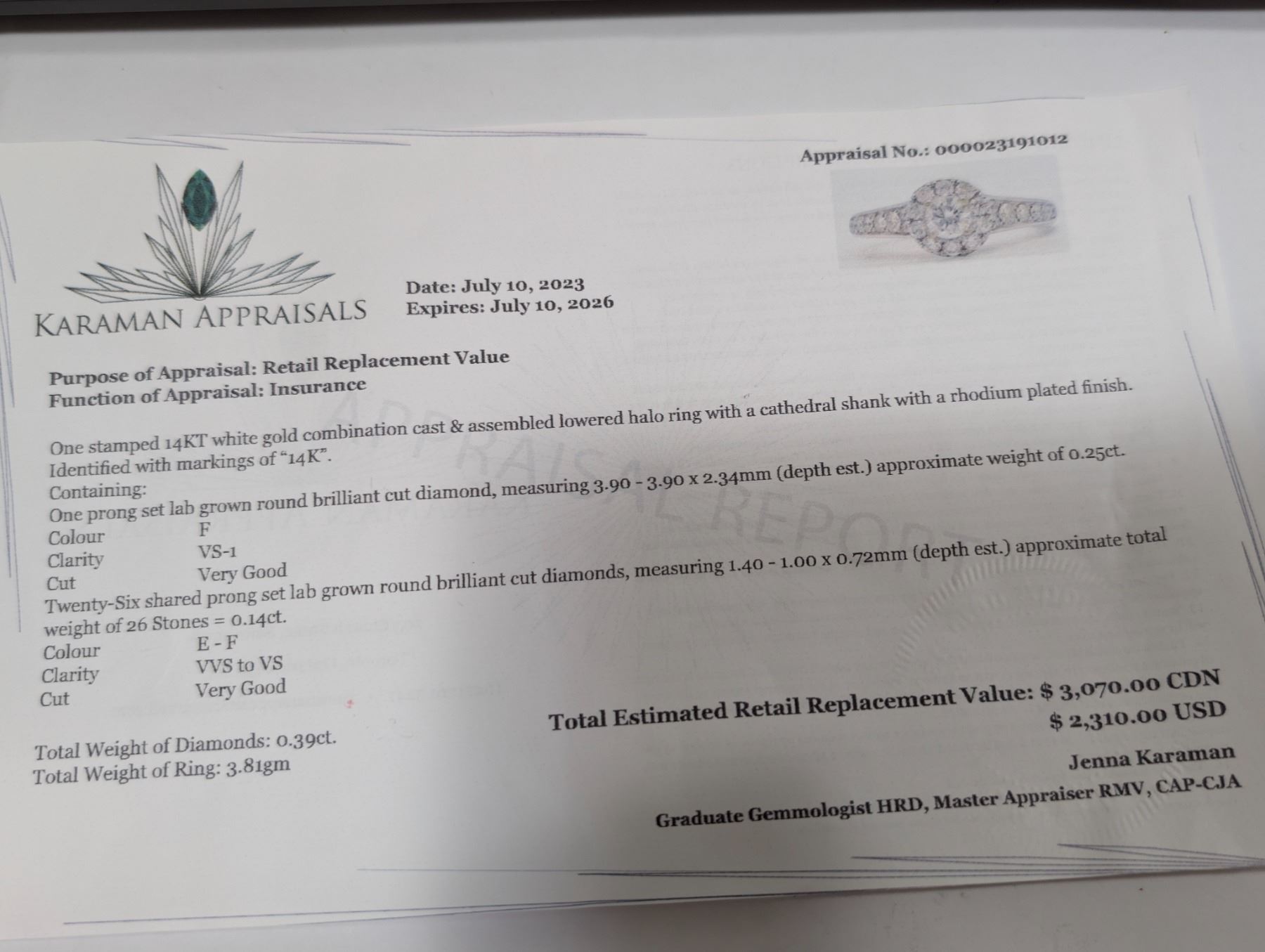 14K(3.81G),Lab Diamond(0.39Ct) Ring (~Size 7)(Ring is resizable for $50) (~length 0 inches), Appraised Retail $3070