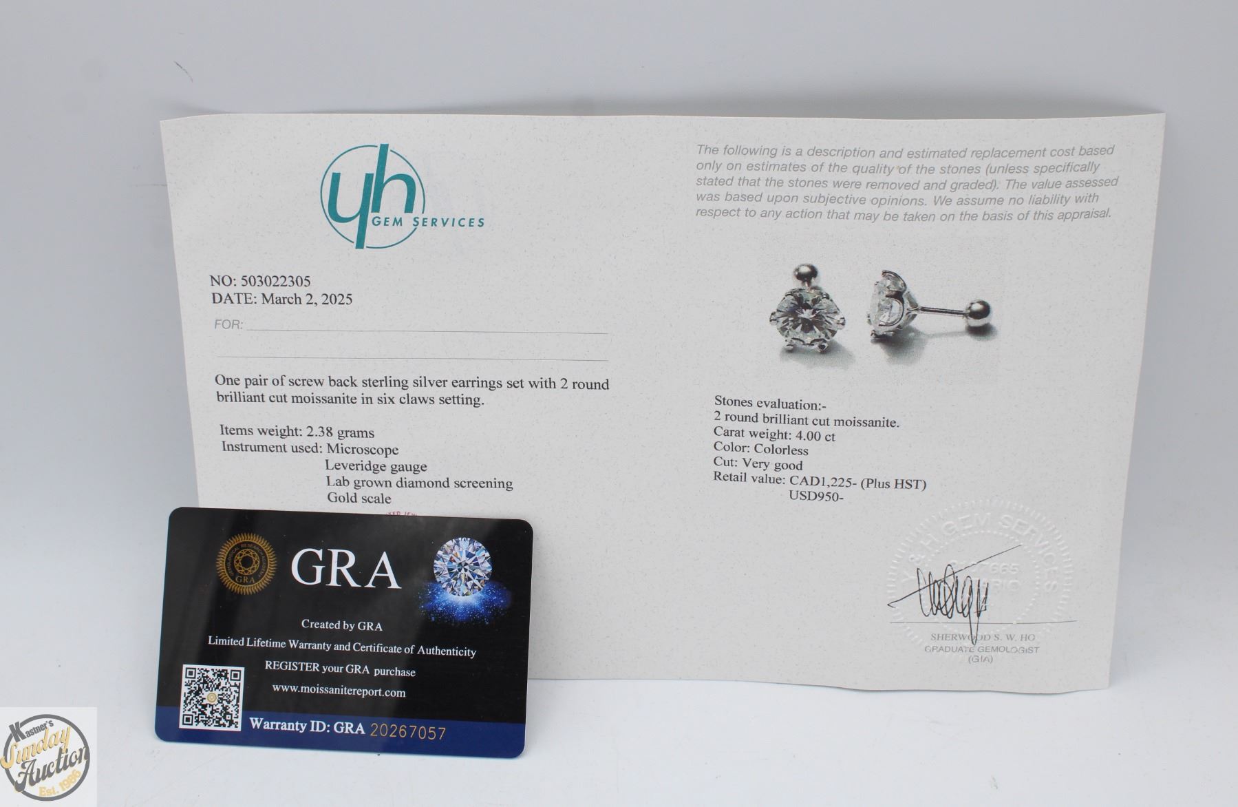 MOISSANITE STONES VVS D COLOR SET IN 6 CLAW BASKET HEAD SET IN 925 SILVER EARRINGS WITH SCREW BACKS RETAIL VALUE $1,225.00