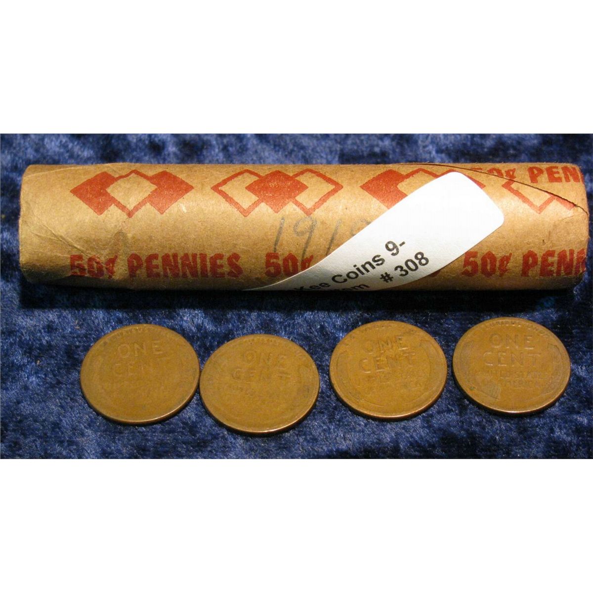 308. 1919 S Solid Date Roll of Lincoln Cents. Circulated.