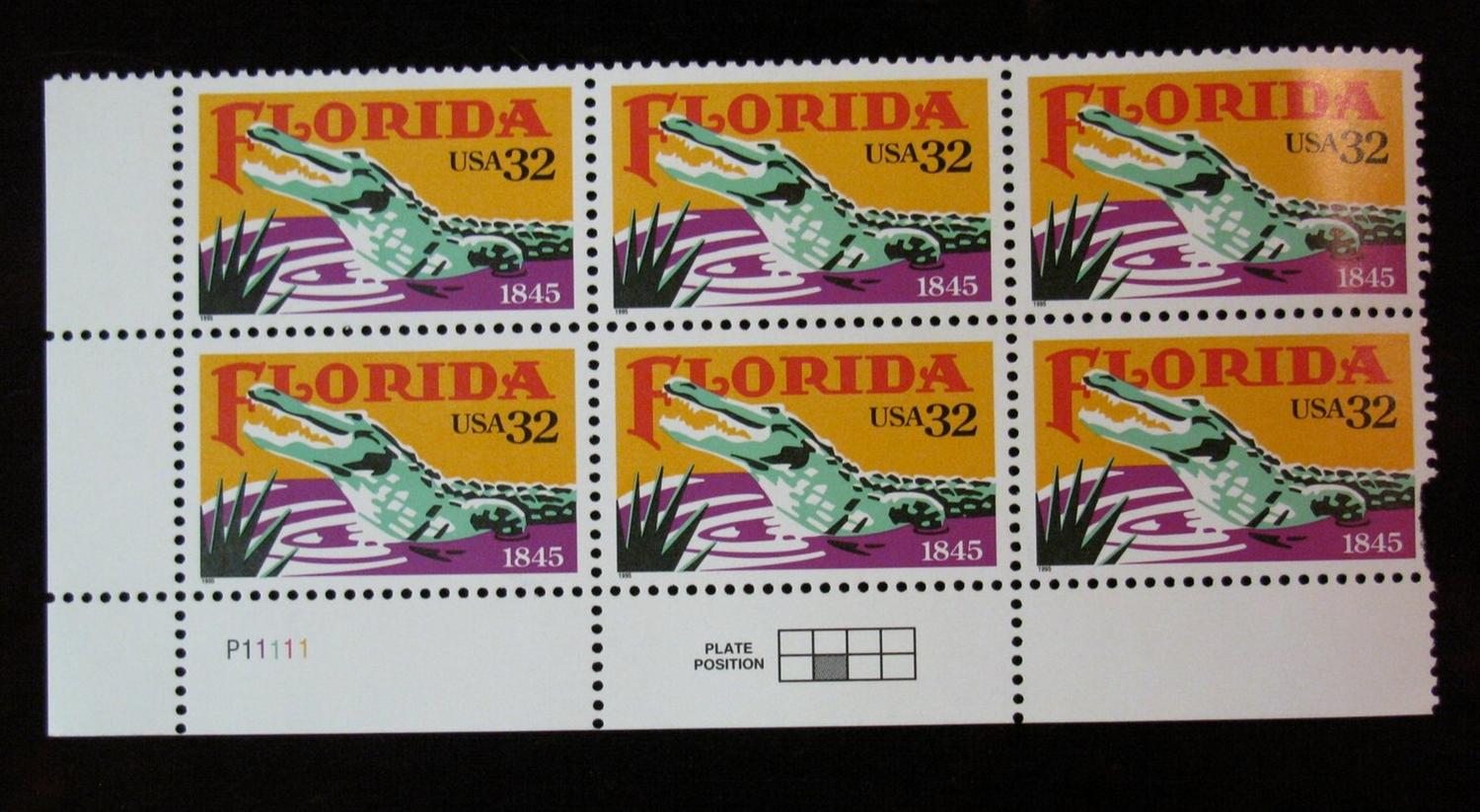 308. Block of 6 Mint Unused Florida .32c Postage Stamps.