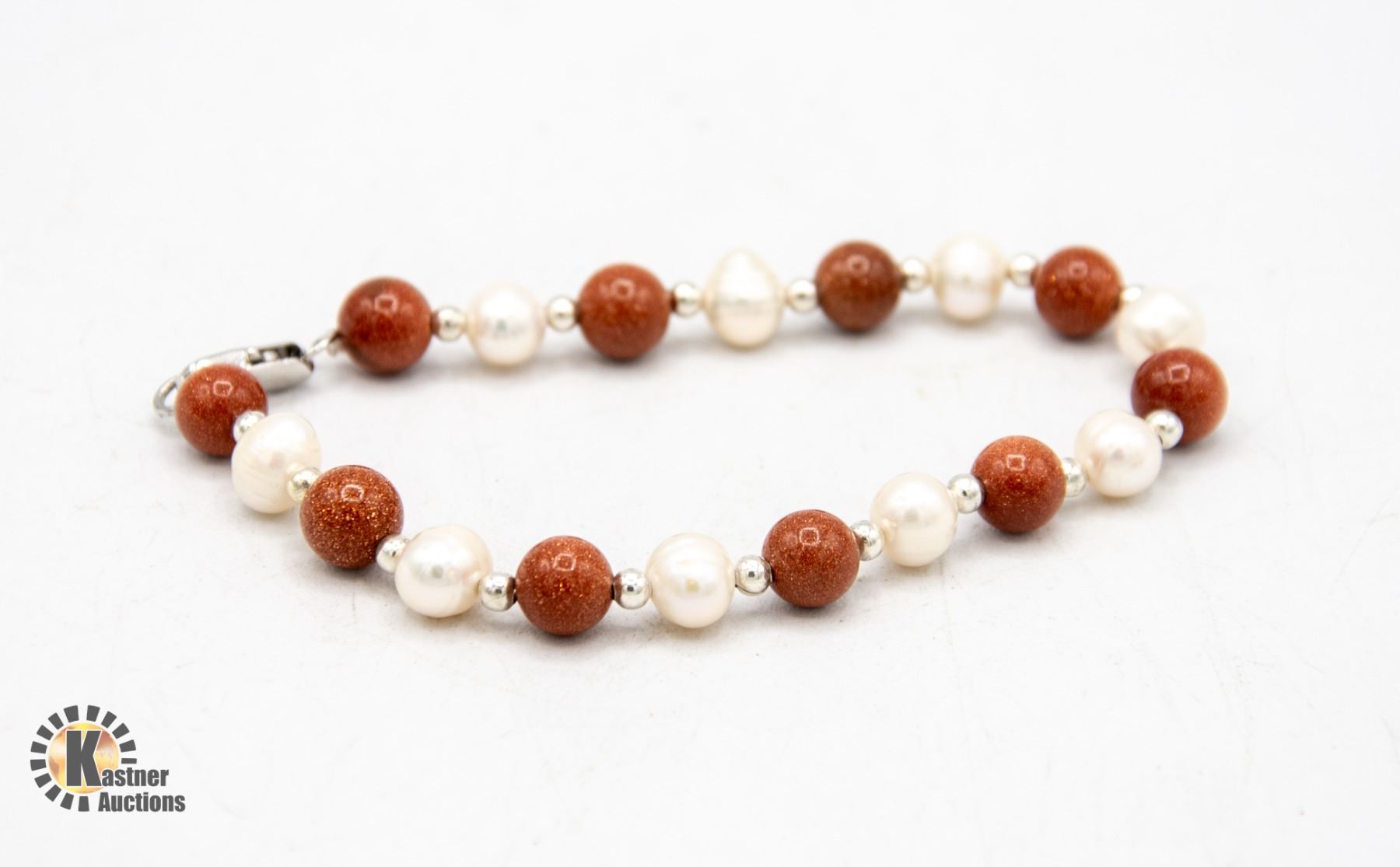 #308- FRESH WATER PEARL , SANDSTONE BRACELET