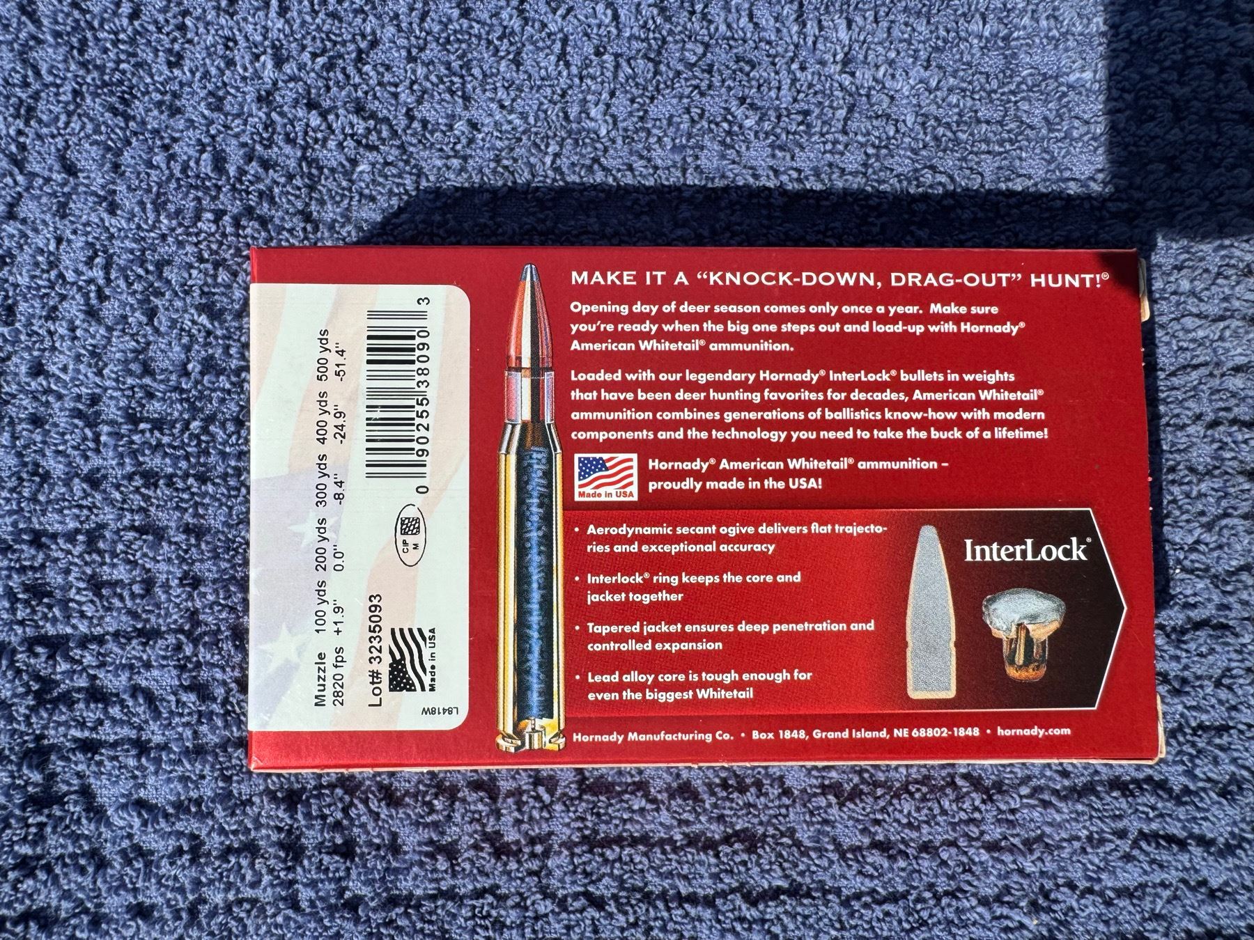 308 WIN HORNADY AMERICAN WHITETAIL (INTERNAL REFERENCE: B)