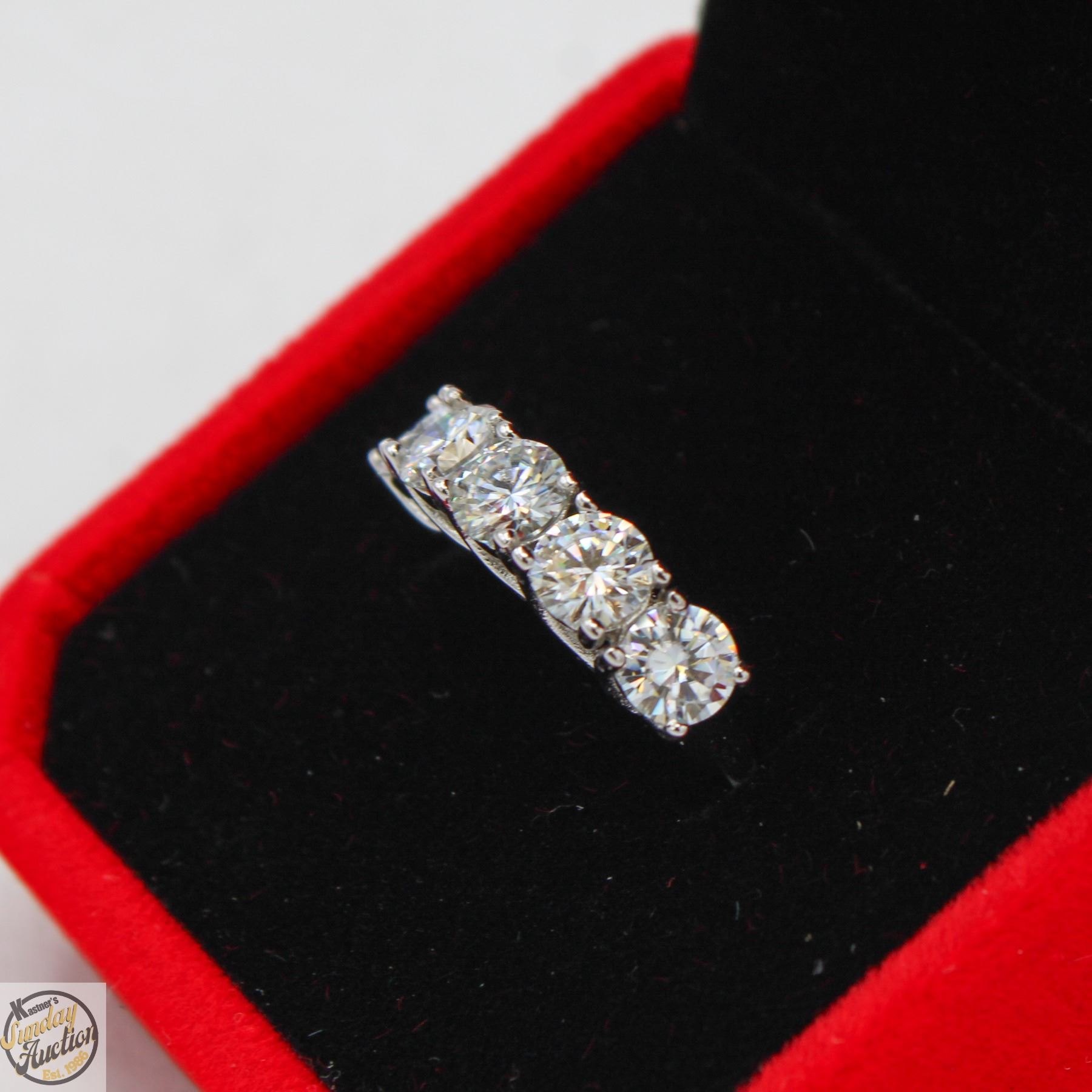 MOISSANITE STONE VVS D COLOR WITH THE 5 MOISSANITE STONES SET ON TOP IN A ROW SET IN 925 SILVER RING SIZE 6