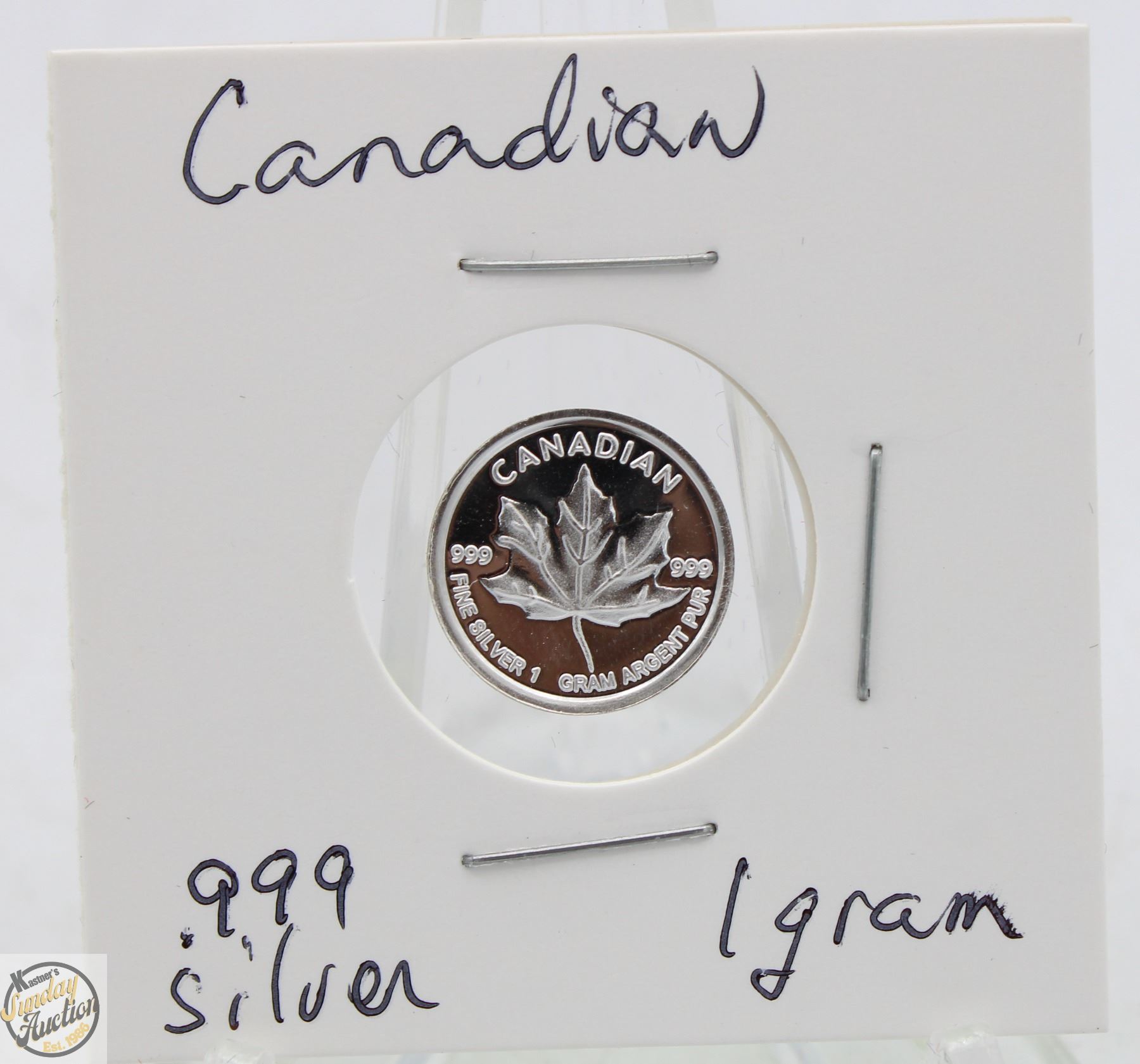 #3087-CANADIAN .999 FINE SILVER 1 GRAM WITH MAPLE