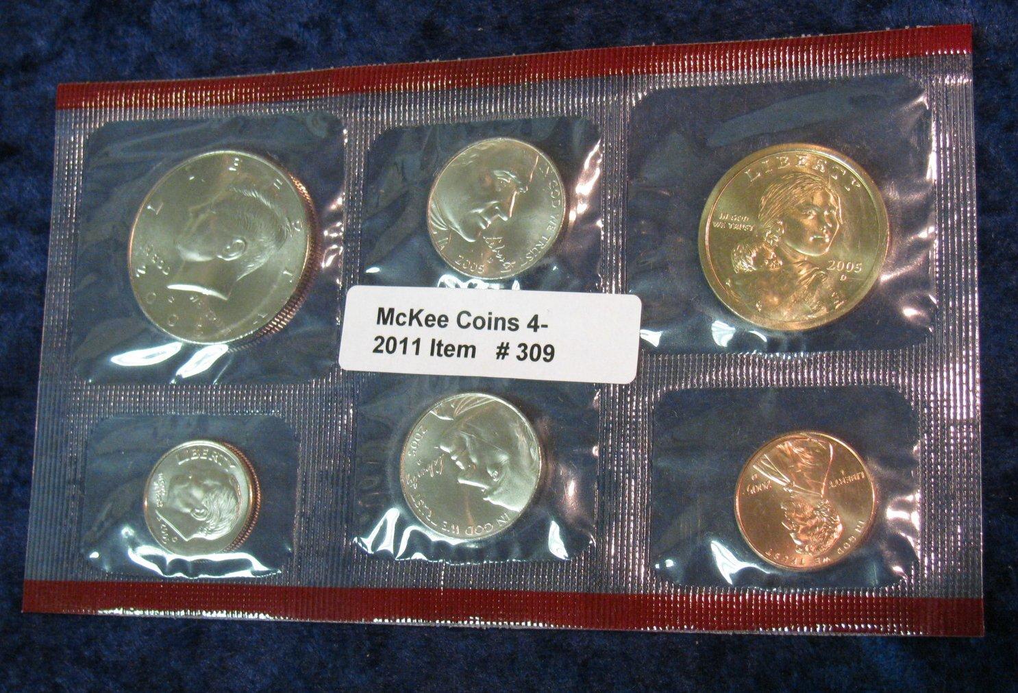 309. 2005 Denver U.S. Mint Set in original cellophane. Cent to Dollar.