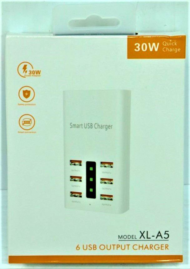 30W QUICK CHARGE 6 USB OUTPUT CHARGER- NEW IN RETAIL BOX