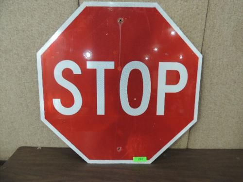 30X30 OCTAGON ALUMINUM REFECTIVE STOP SIGN. TAGGED AS DECOMMISSIONED. AS SHOWN. VIEW PICTURE FOR DETAIL.
