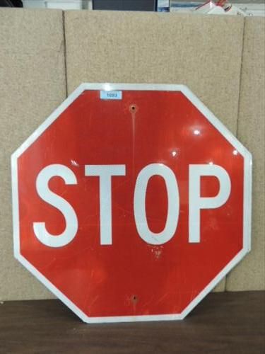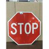 30X30 OCTAGON REFLECTIVE ALUMINUM STOP SIGN. TAGGED AS DECOMMISSIONED. AS SHOWN. VIEW PICTURE FOR DETAIL