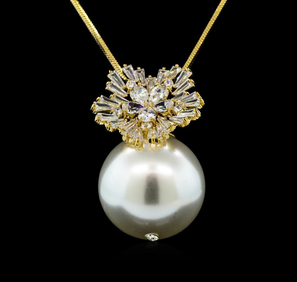 High end designer jewelry. 30mm Seashell Crystal Star Pendant - Gold Plated. Gold Plated Chain/(2") Ext Clasp. White/gold. 30/2inches.