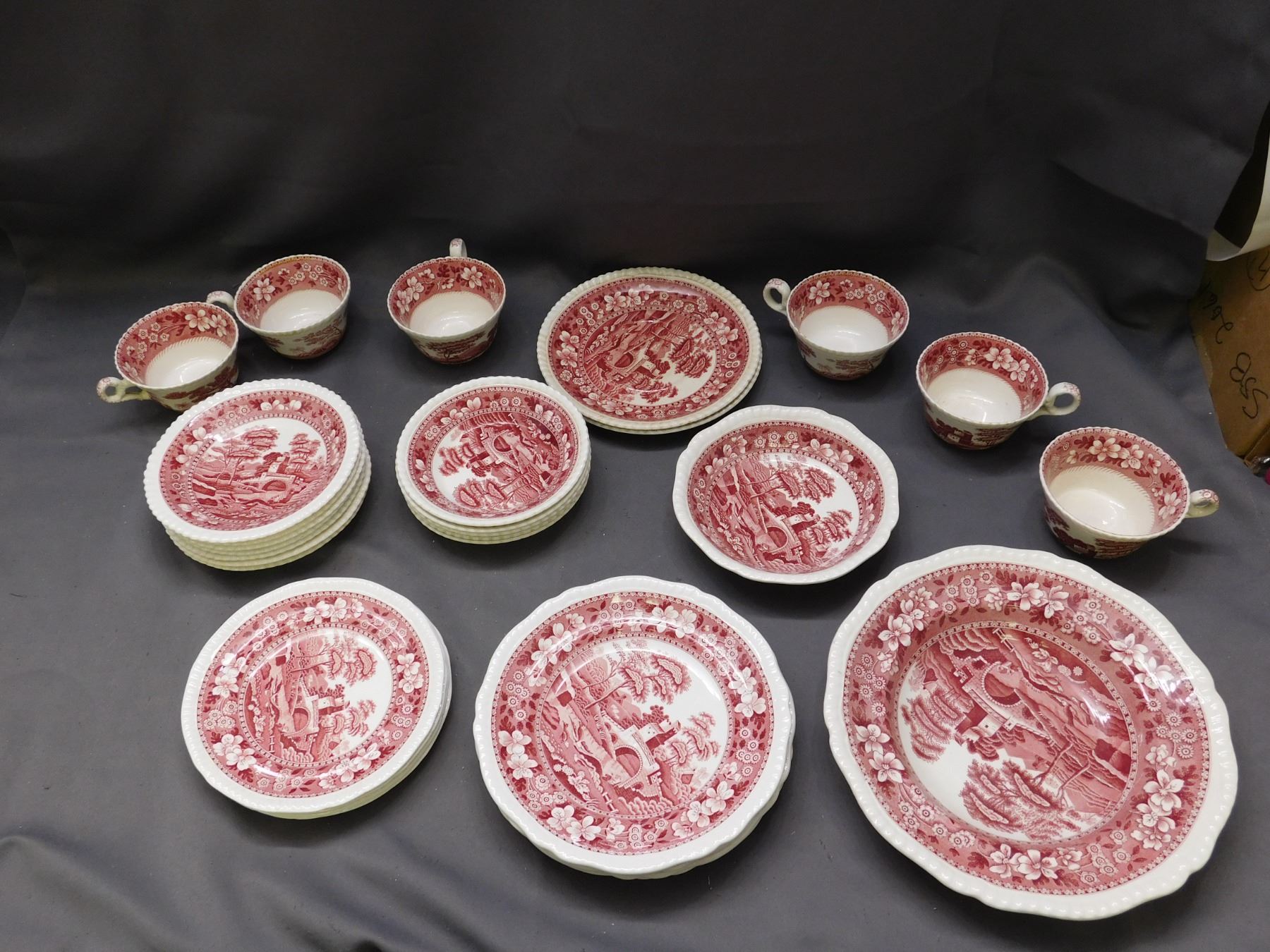 1 serving bowl, 1 all purpose bowl, 5 fruit, 2 saucers, 6 cups, 7 saucers, 4 salad plates, 4 bread butter