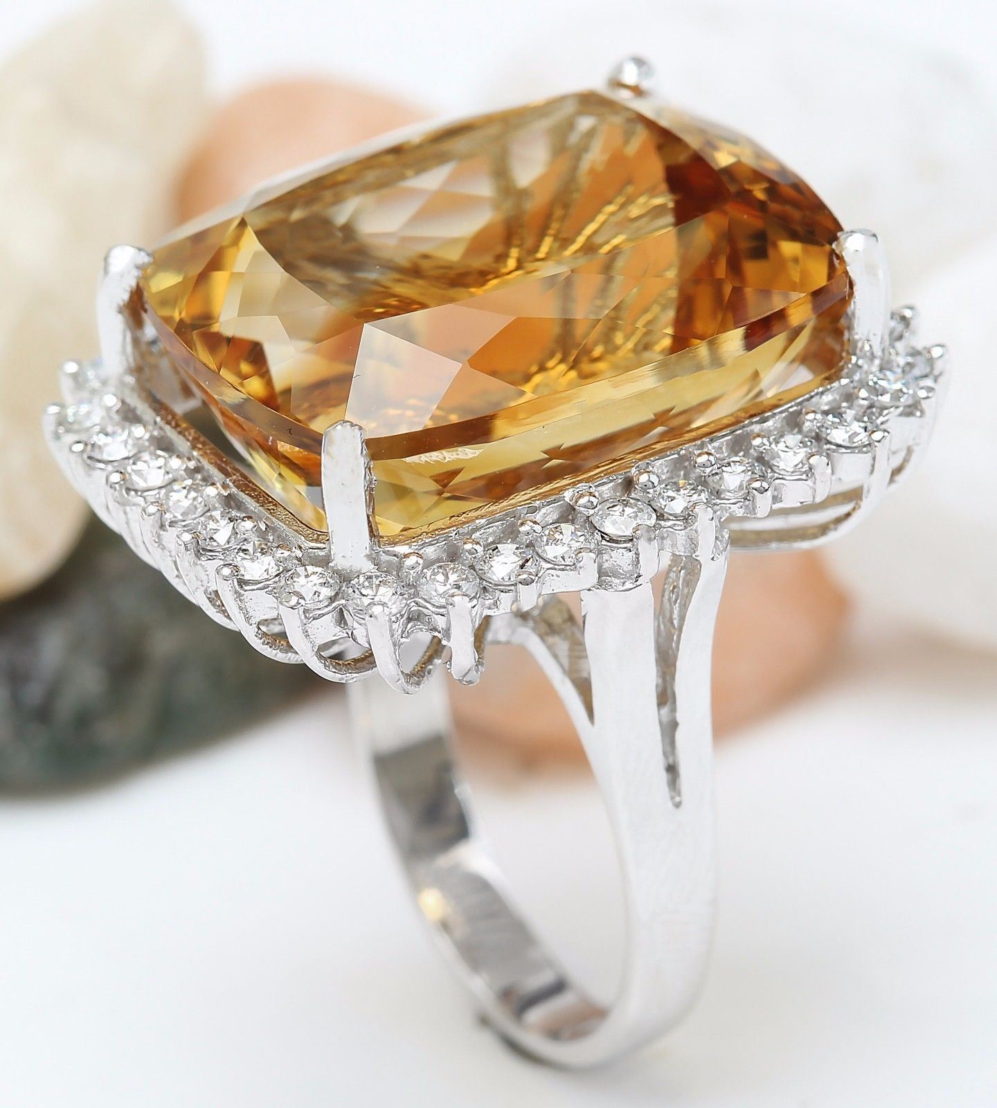 31.08 Carat Natural Citrine 18K Solid White Gold Diamond Ring