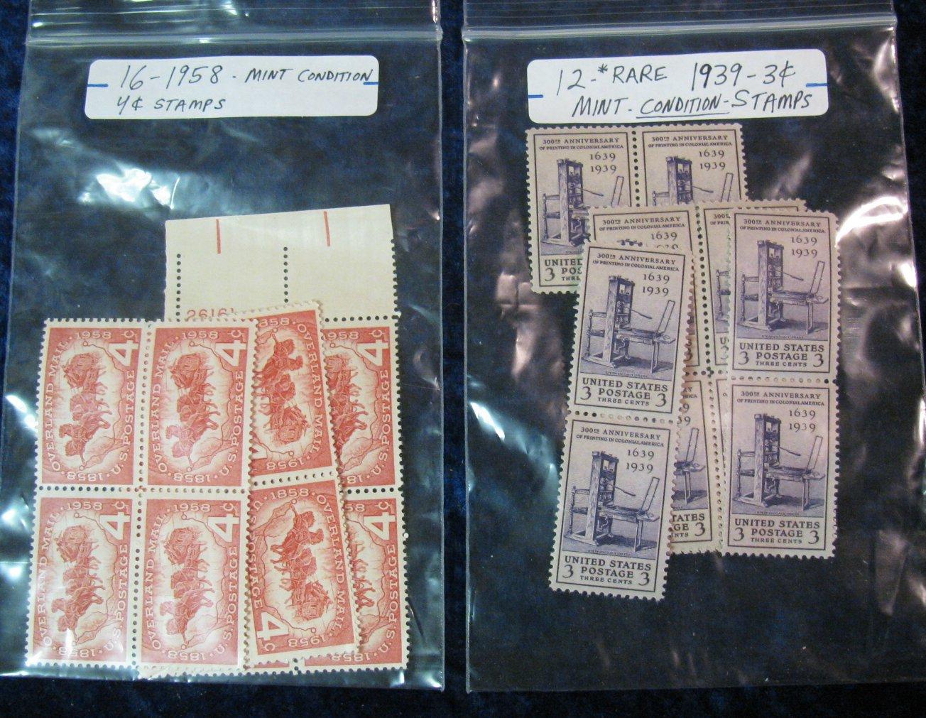 31. (12) Rare 1939 Three Cent & (16) 1958 Mint Condition 4c Stamps.