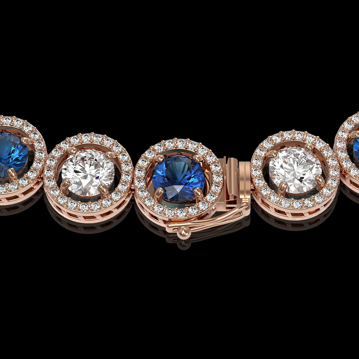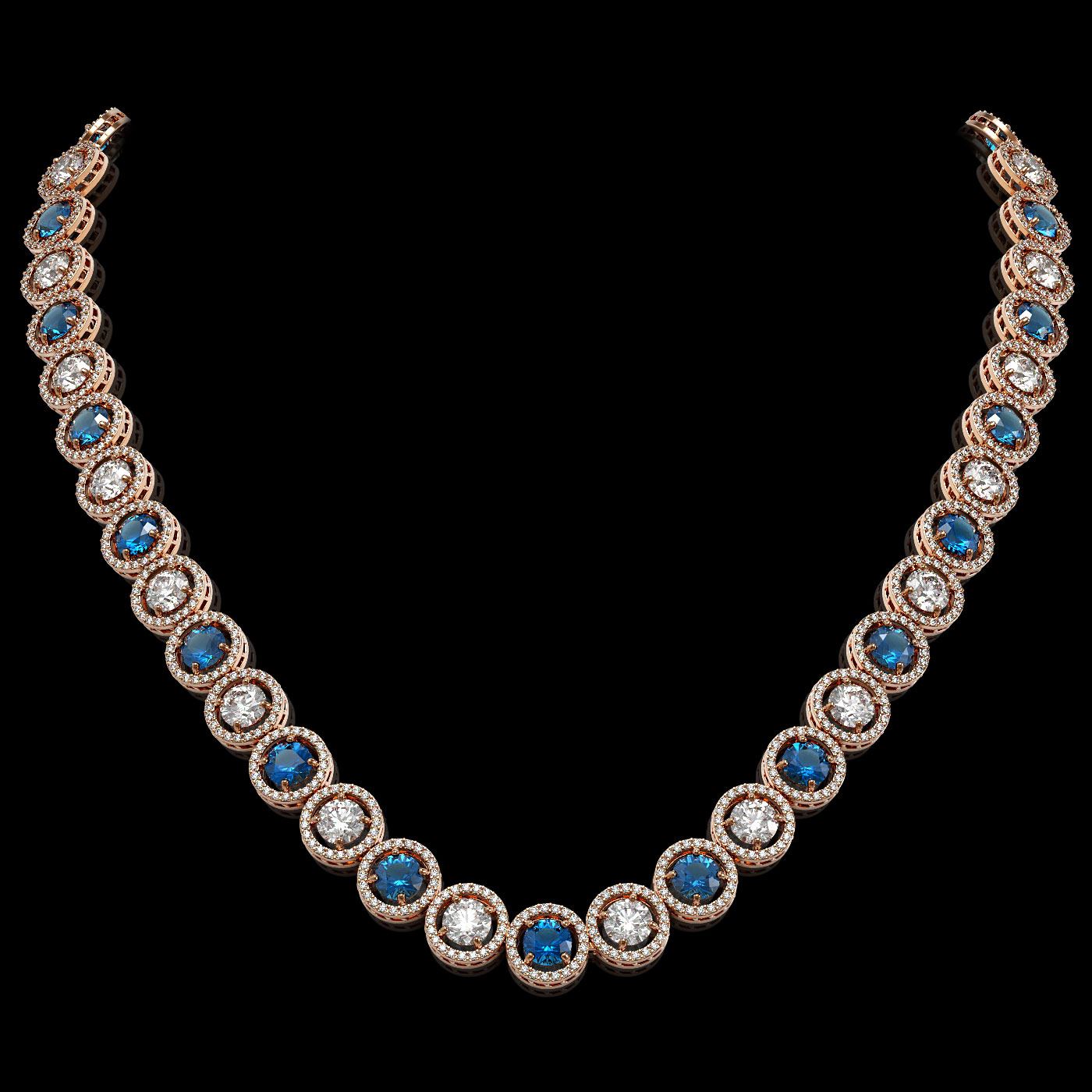 REF-2904R4K - SKU: 42588 ---- 31.18 ctw Blue & Diamond Micro Pave Necklace 18K Rose Gold