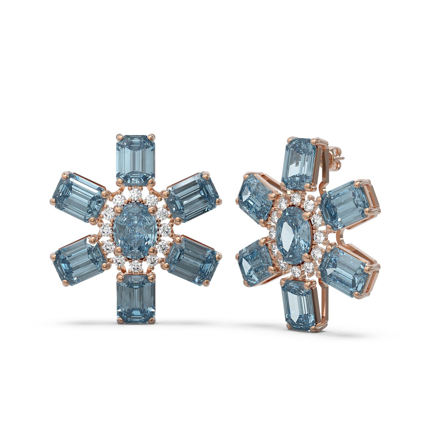 REF-210M2G - SKU: 51005 ---- 31.19 ctw Blue Topaz & Diamond Earrings 18K Rose Gold