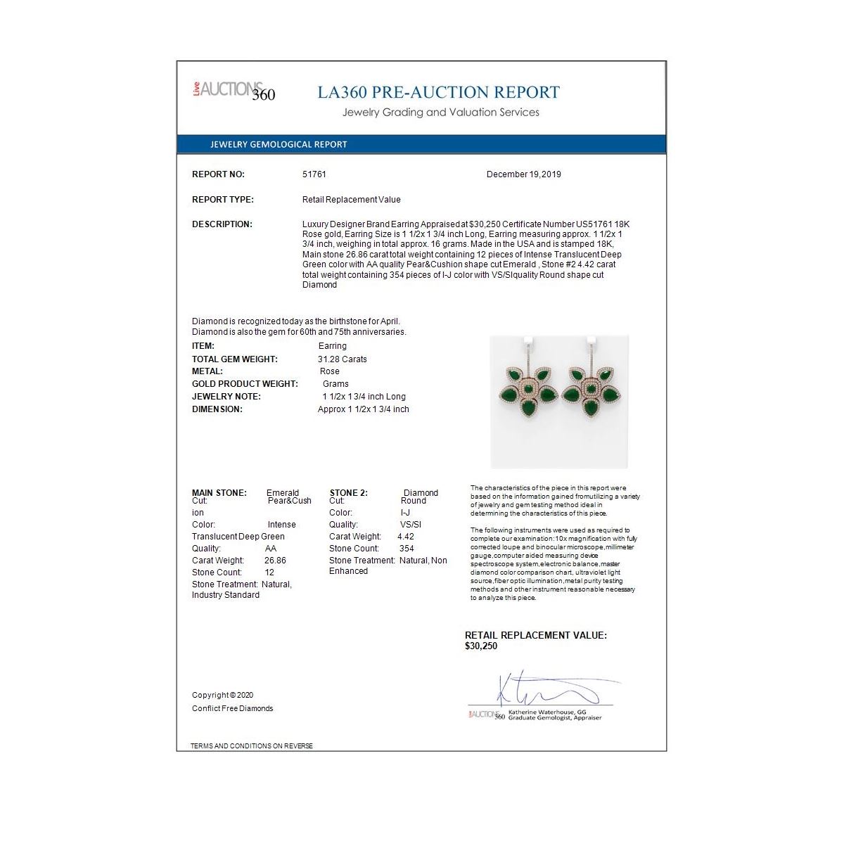REF-687K3Y - SKU: 51761 ---- 31.28 ctw Emerald Diamond Earrings 18K Rose Gold