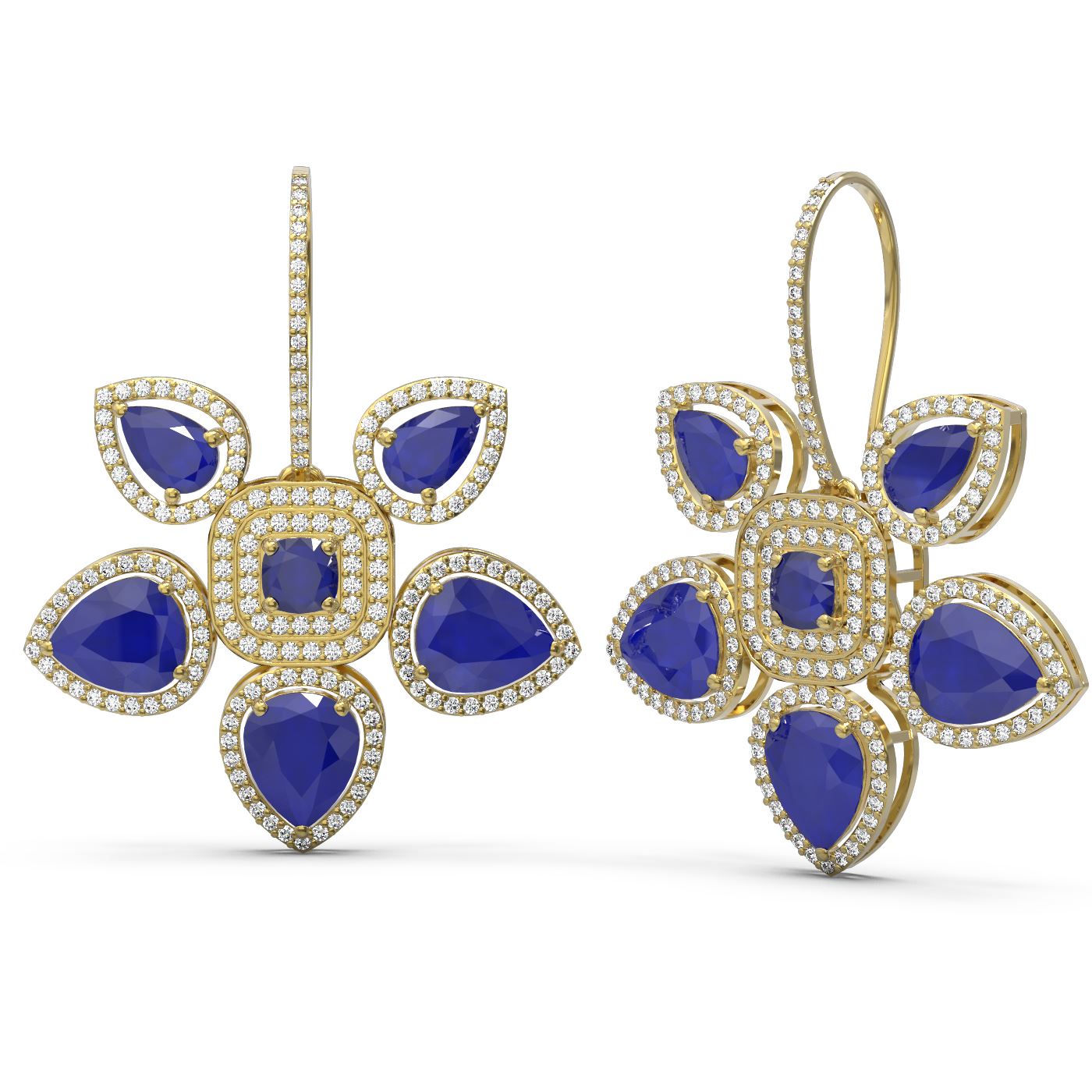 REF-687Y3X - SKU: 51768 ---- 31.28 ctw Sapphire Diamond Earrings 18K Yellow Gold
