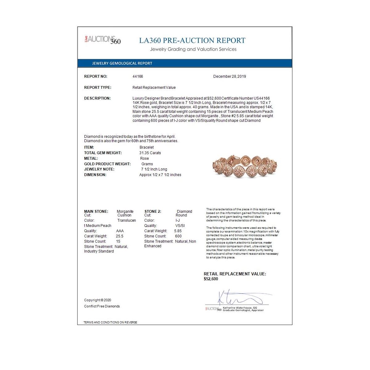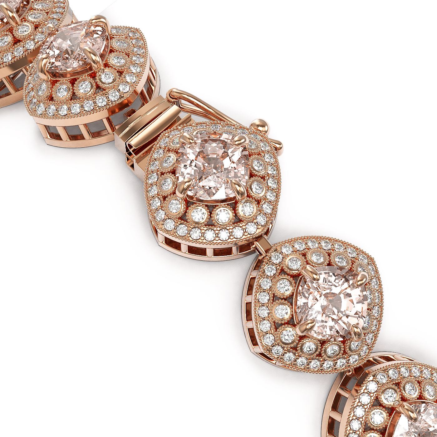 REF-1063W3H - SKU: 44166 ---- 31.35 ctw Morganite & Diamond Victorian Bracelet 14K Rose Gold