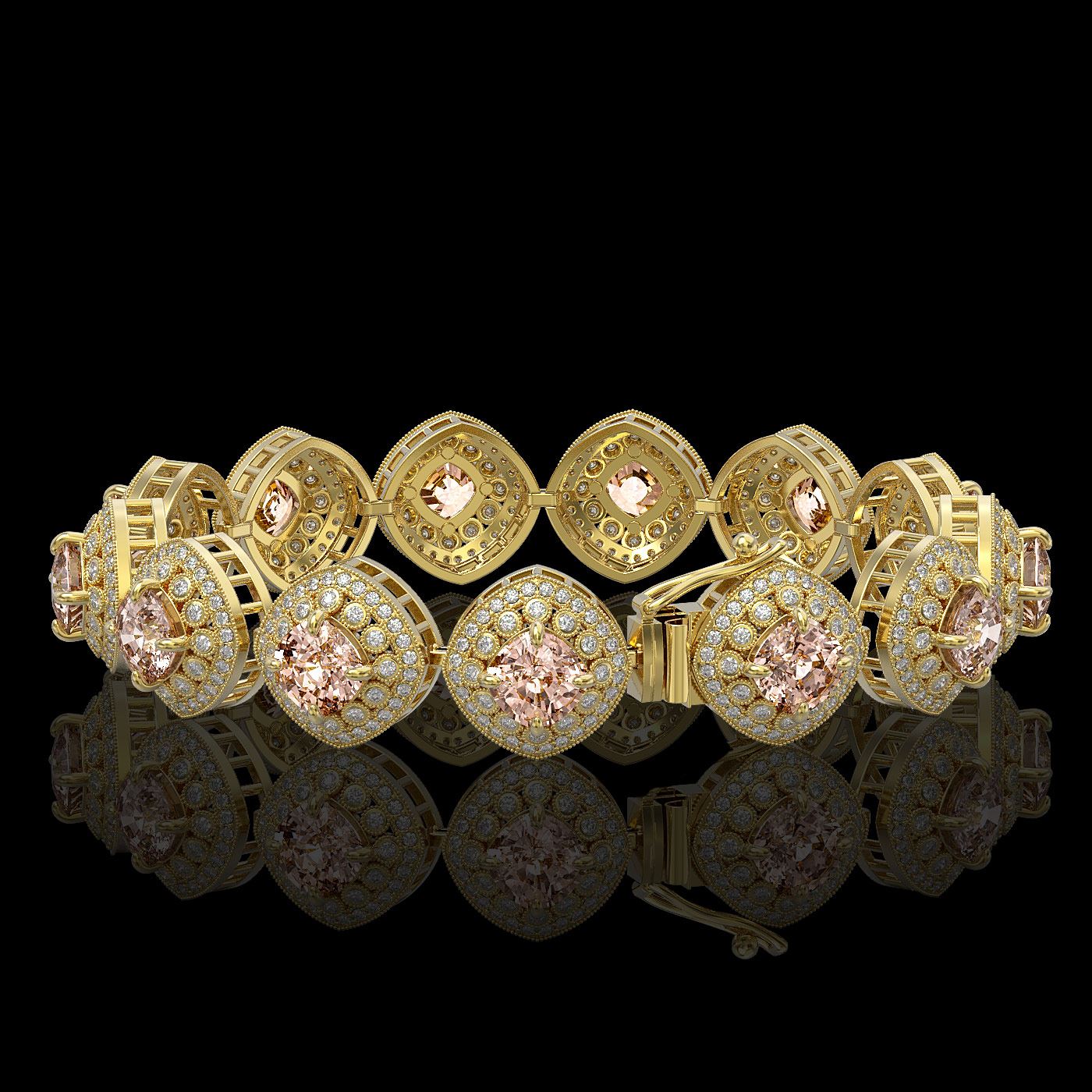 REF-1063N3F - SKU: 44167 ---- 31.35 ctw Morganite & Diamond Victorian Bracelet 14K Yellow Gold