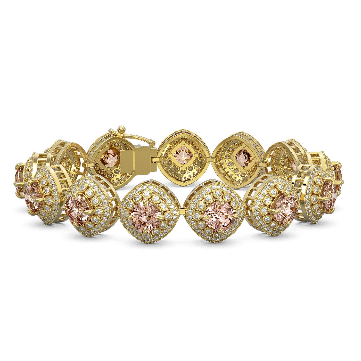 31.35 ctw Morganite & Diamond Victorian Bracelet 14K Yellow Gold