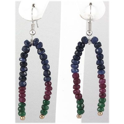 31.39ct 2 Row Natural Multi-Color Silver Hook Earring **|**|** Natural Multi-Color Double Line Micro Faceted 4-4.5mm Beads Gemstone Silver Hook Earring; 2inch long ; MSRP: $100