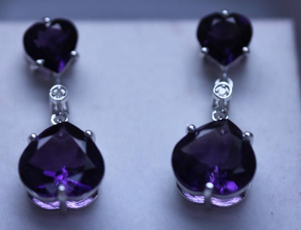 31.45 CTW AMETHYST AND DIAMOND EARRINGS .925 STERLING S **|**|** 31.45 CTW AMETHYST AND DIAMOND DANGLING EARRINGS .925 STERLING SILVER; CENTERSTONE 11.5 CTW; DIAMOND 0.03 CTW ; MSRP: $600